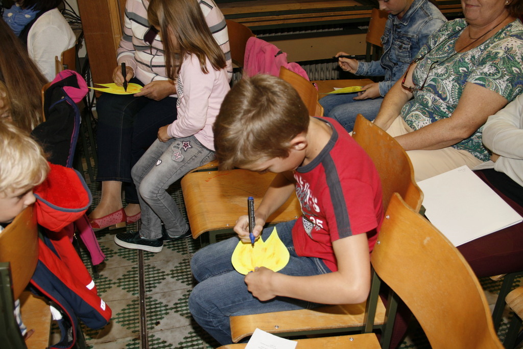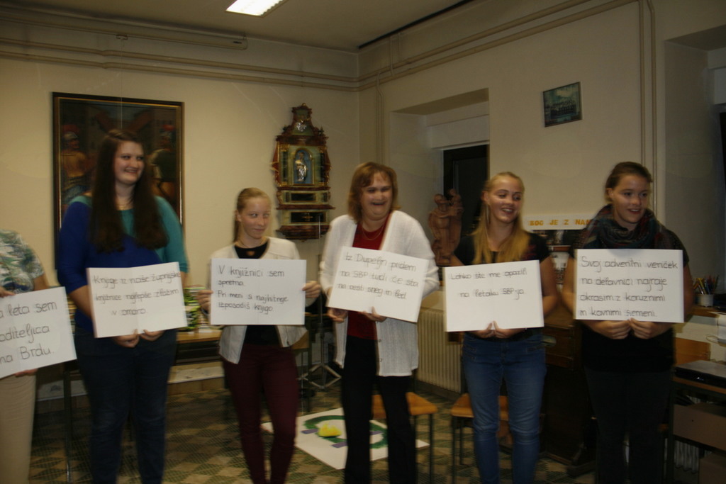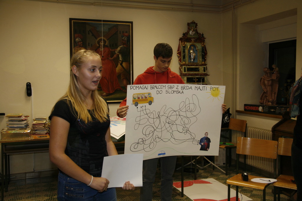 Po več kot desetih letih vodenja SBP se je Zinka Meden odločila, da vajeti preda mlajši generaciji, a ne popolnoma, ostala bo še animator in skrbela tudi za Slomškov bralni klub za odrasle, ki bo z branjem pričel malce kasneje. Obiskovalci, tako bralci kakor njihovi starši smo že na uvodnem srečanju spoznali, da pri SBP piha nov mladosten veter. Predstavitev branj, knjižnice in načina kako se prebrano prestavi smo tokrat spoznavali ob pomoči zastavljenih vprašanj in ob risanju na velike plakate. Kljub številnim spremembam je himna še vedno ista in tokrat jo je na kitaro spremljal Janez Meden, ki je za to priložnost bobne zamenjal za kitaro. Čeprav je bolj vajen bobnov moramo priznati, da je njemu šlo z igranjem veliko bolje, kakor nam z petjem, ampak vaja dela mojstra in do srečanja na Ponikvi prihodnje leto bomo tudi himno znali zapeti brez napak. Poleg himne je bila stalnica tudi nagovor in spodbuda župnika in tokrat je bralce, animatorje in ostale nagovoril Pavle Okoliš z besedami: " Ni povsod tako razvito in obenem poudarjeno, da je branje pomembno ne samo za mladega človeka ampak za vse generacije. Vesel sem da boste z veseljem vzeli v roke knjige in jih prebirali, a ne samo to, da jih boste tudi predstavili. Hvala staršem za to skrb, da svoje otroke navdušujete za lepo slovensko besedo. Naj nam bo Anton Martin Slomšek priprošnjik, da bomo cenili to kar prejemamo od staršev, se pravi lepo besedo in zgled. Hvala vsem, ki se trudite, da bi slovenska beseda bila bolj brana ." In če so nam animatorji predstavili kako poteka srečanje bralcev, sta nam Bogdana in Lucija predstavili knjižnico SBP, ki se ponaša z več deset knjigami za vse starostne skupine. Še nekaj nagradnih vprašanj in začelo se je zares, knjižnica je odprla svoja vrata in bralci so že segli po knjigah, ki jih bodo prebirali med tednom. Razveseljujoče je dejstvo, da so se bralcem tokrat pridružili še bralci iz župnij, kjer SBP nimajo. V soboto 1. oktobra se jim lahko pridružite še vi, če vas veseli branje, ali če vas le zanimajo vsebine številni knjig, ki so na razpolago. Odrasle glave animatorji vabijo v Slomškov bralni klub za odrasle, ki začne svoje poslanstvo najverjetneje v mesecu oktobru.