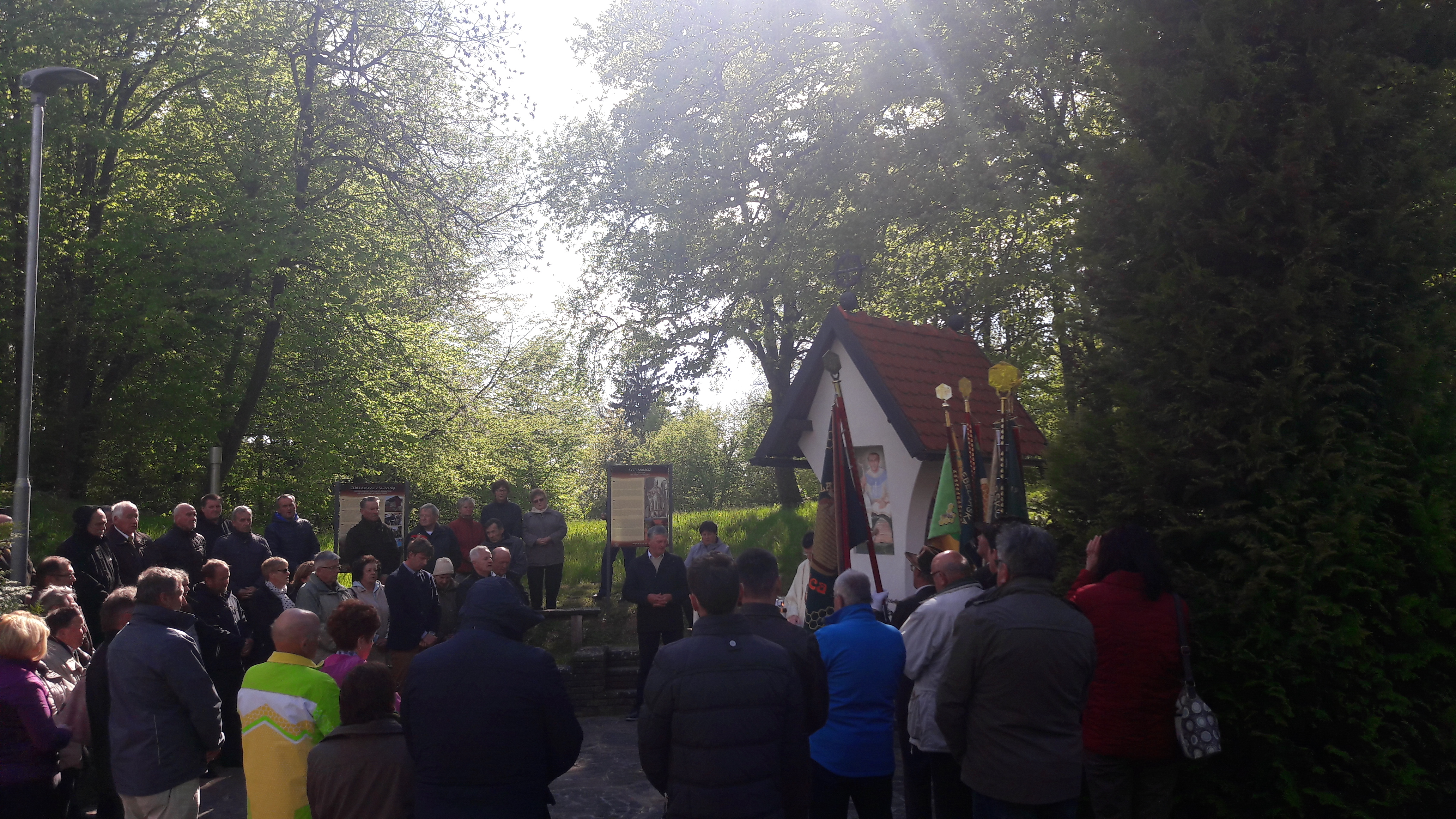 V četrtek, 20. aprila, smo se zbrali ob kapelici svetega Ambroža, kjer je domači župnik g. Pavel Okoliš daroval mašo za dobro letino in pokojne čebelarje. Sledila je otvoritev prenovljenega dela čebelnjaka. Prireditev je povezovala Barbara Hace, govorniki so bili predsednik ČZS Boštjan Noč, župan občine Lukovica Matej Kotnik in predsednik domačega društva Mitja Nakrst. O pomenu apiterapije je spregovoril priznani apiterapevt Vlado Pušnik. S pesmijo so dogodek pospremili pevci Komornega moškega zbora Čebelarske zveze Slovenije, slavnostno pa sta trak pred vhodom v čebelnjak prerezala inovator in avtor apipostelje in opazovalnega panja Franc Peterka in predsednik ČZS Boštjan Noč. V veselem druženju so se gostje zadržali ob čebelnjaku v prijetnem okolju, dobri družbi in pogostitvi.