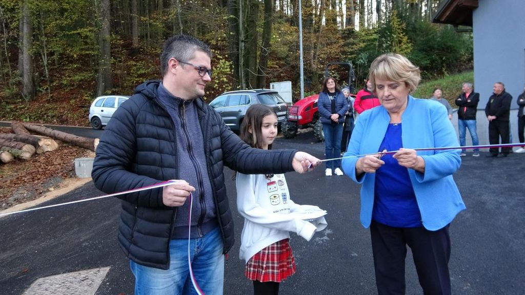 Prenovljen cestni odsek sta s prerezom traku v uradno uporabo predala županja mag. Olga Vrankar in predsednik KS Trojane Borut Smerkolj.