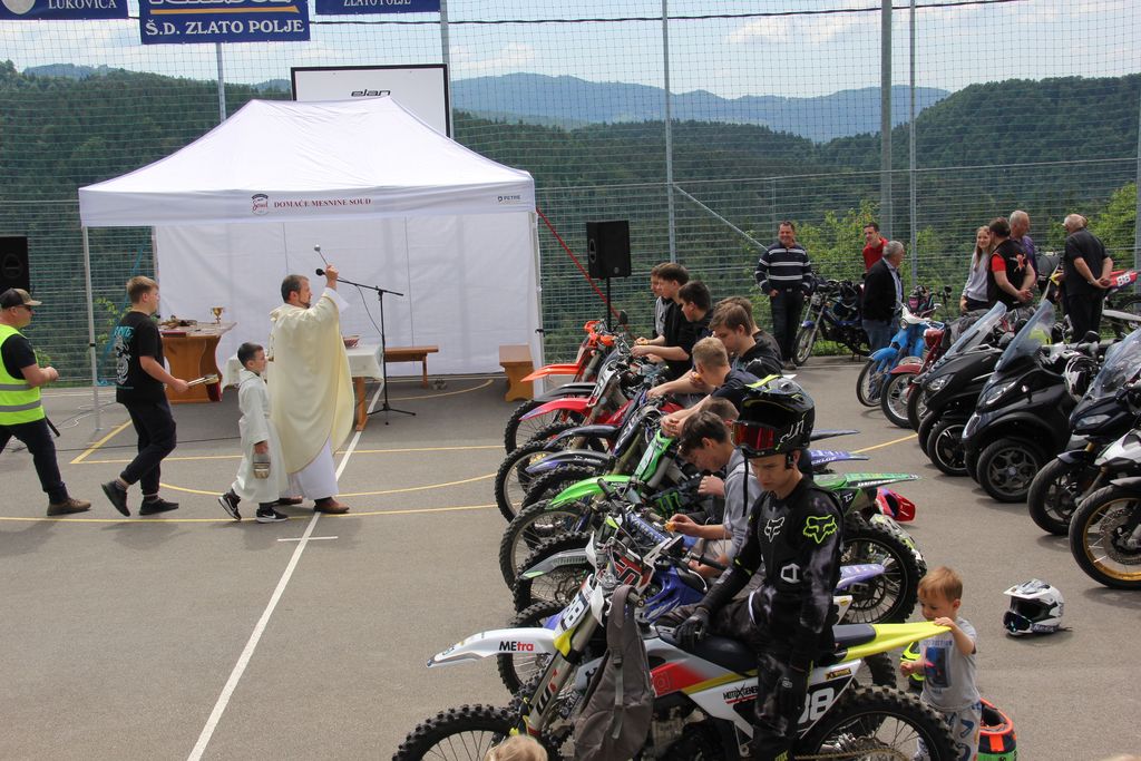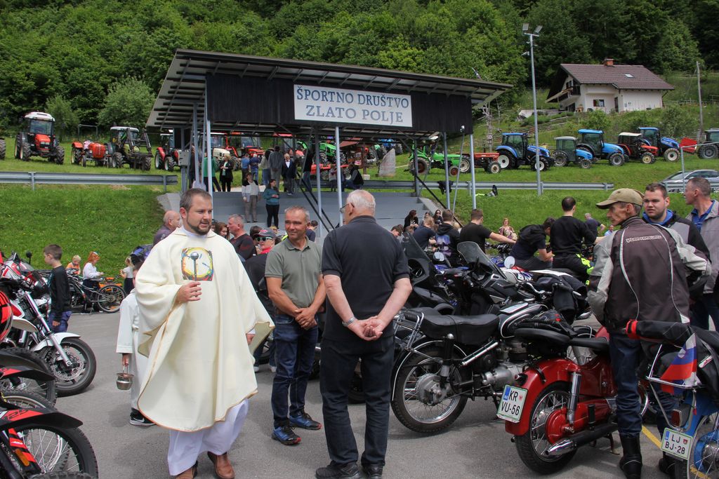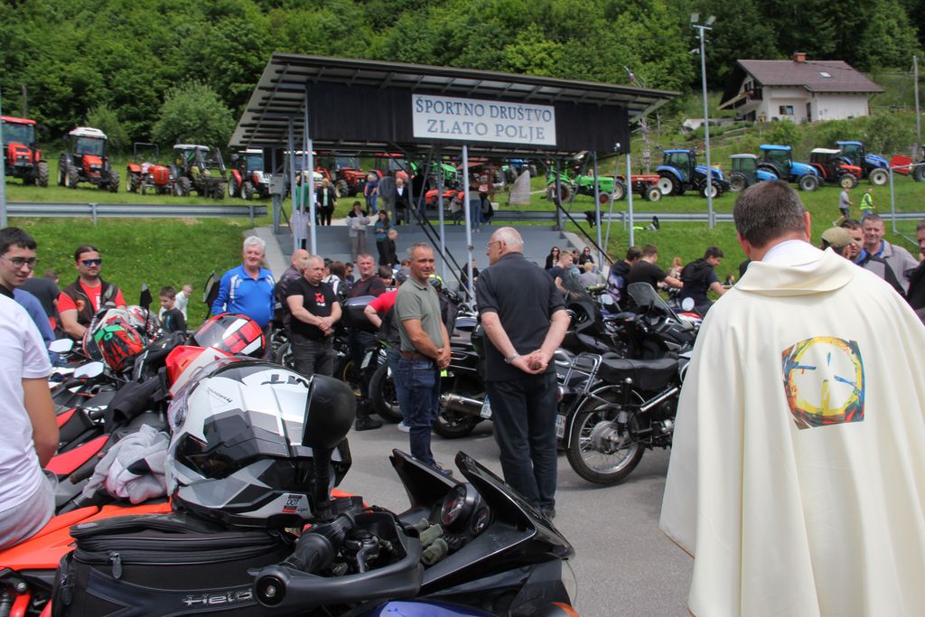 Blagoslov motorjev in traktorjev sta ponovno pripravila Športno društvo Zlato Polje in župnija Zlato Polje, ki so ga letos združili s sveto mašo na športnem igrišču. Tako so številni motoristi in traktoristi skupaj z ostalimi farani in farankami bili deležni ne le blagoslova ampak tudi Božje besede in nagovora. Pri sveti maši so za lepše bogoslužje poleg pevk cerkvenega pevskega zbora poskrbeli tudi ministranti. Na koncu svete maše je sledil še najprej besedni del blagoslova in nato blagoslov tako motorjev, traktorjev kot ostalih prevoznih sredstev. In, ker je bil Gospodov dan, ko se na kmetih kakšnih večjih del ne opravlja je bilo to videti tudi po številu traktorjev. Pri blagoslovu, kjer so bile velikokrat izrečene besede župnika Bernarda srečno in varno vožnjo so bili, tako kot je že v navadi, vsi deležni izdatnega okrepčila, da so lahko nadaljevali pot naprej, saj je sončno vreme kar vabilo na daljšo vožnjo z motorjem. Vozniki traktorjev so svoje traktorje zapeljali domov, a njihov pogled je bil usmerjen v nebo, kajti čaka jih košnja, a vreme se kar ne da in ob dežju, ki pada vsake toliko ni ravno primerno kositi, saj bo težko posušiti. Upamo, da bo po blagoslovu ne le varna vožnja in varno delo, ampak tudi lepo sončno in toplo vreme.
