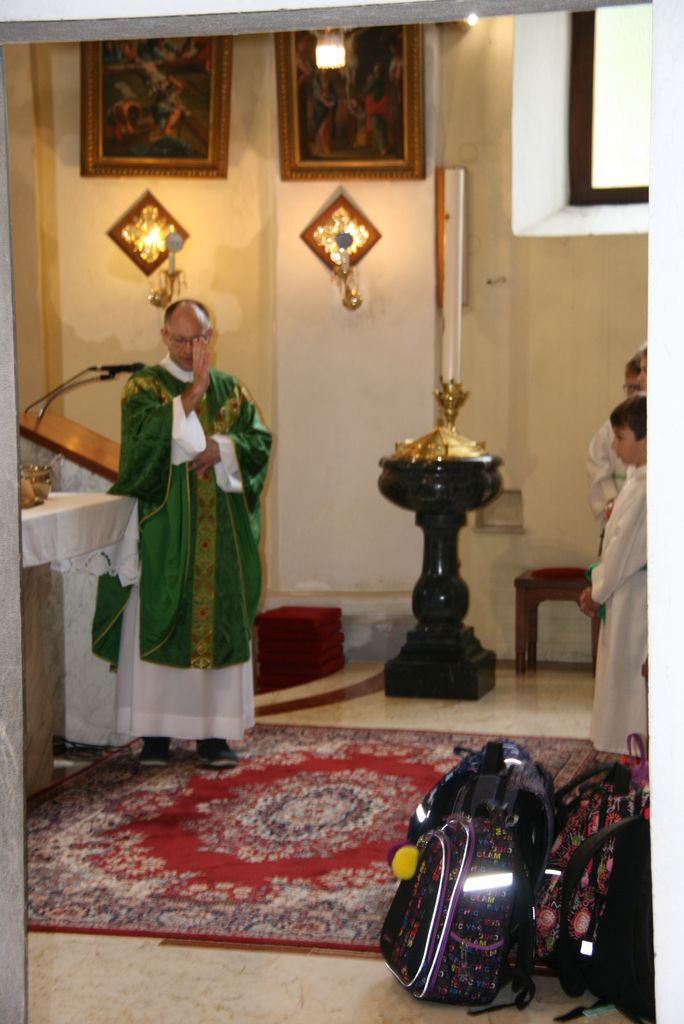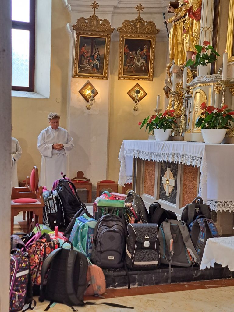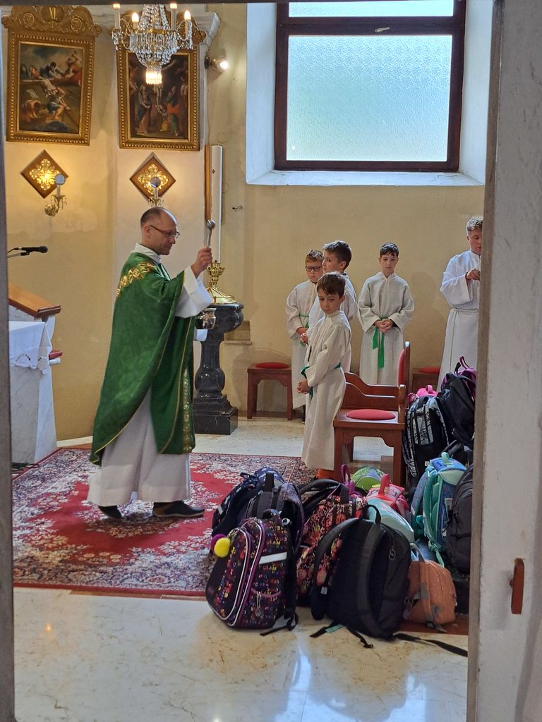 Na nedeljo, 8. septembra,  obhajamo praznik rojstva Device Marije, znan tudi kot mali šmaren, obenem je to 23. nedeljam med letom Gospodov dan. Zato so mnogi duhovniki praznovanje malega šmarna opravili v soboto, da so na  nedeljo pa po tednu dni pouka blagoslovili  tako šolske torbe kot njihovo vsebino ter marsikje še nahrbtnike vrtčevskih otrok. Naj se torej  šolsko  in veroučno leto začne z Božjim blagoslovom, da bo dober tek imelo. Veroučno leto se sicer začne kasneje zaradi prilagoditve urnika s šolskim. Tokrat se  je Gregor Luštrek, ki je daroval sveto mašo  pri nagovoru  navezal na evangelij, ki opisuje kako je Jezus ozdravil gluhonemega. Z besedo, ki jo je nad gluhonemim izrekel Jezus, prosimo pri krstu vsakega otroka, da bi kmalu mogel dojeti Božjo besedo in izpovedati vero v slavo in hvalo Boga Očeta. V tej prošnji je vse kar je najpomembnejše za naše življenje: da bi prepoznali Božji nagovor, ki je navzoč v besedah, ljudeh in dogodkih našega življenja in da bi nas ta Beseda tako vodila, da bi s svojim življenjem slavili in hvalili Boga. Ker je to pot za izpolnitev našega življenja, je pomembno, da je takšna prošnja vedno navzoča v naših mislih, tudi ko stopamo v šolo, k verouku  in k drugim oblikam učenja in rasti. Pri tem se lahko priporočimo  Mariji, katere rojstvo danes praznujemo, da bi nam ona, ki je v  polnosti izpolnila Božjo voljo, tudi nam pomagala izpolniti to, kar Bog predvideva za dosego naše sreče. Torbe so blagoslovljene, šolsko in veroučno leto sta v polnem zamahu in teku in zato, da bo leto uspešno naj pomaga  tudi nedeljski blagoslov torb in nahrbtnikov v vseh župnijah kjer so ga imeli.