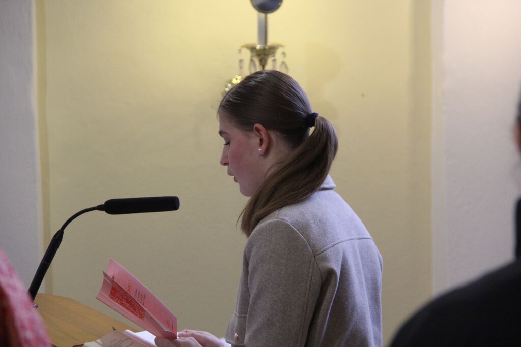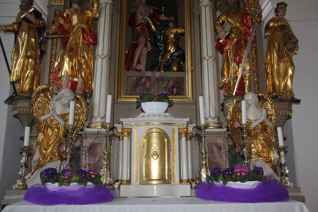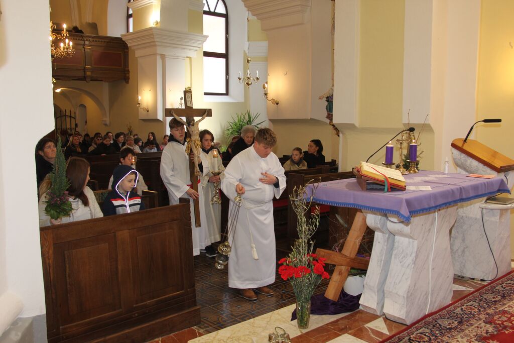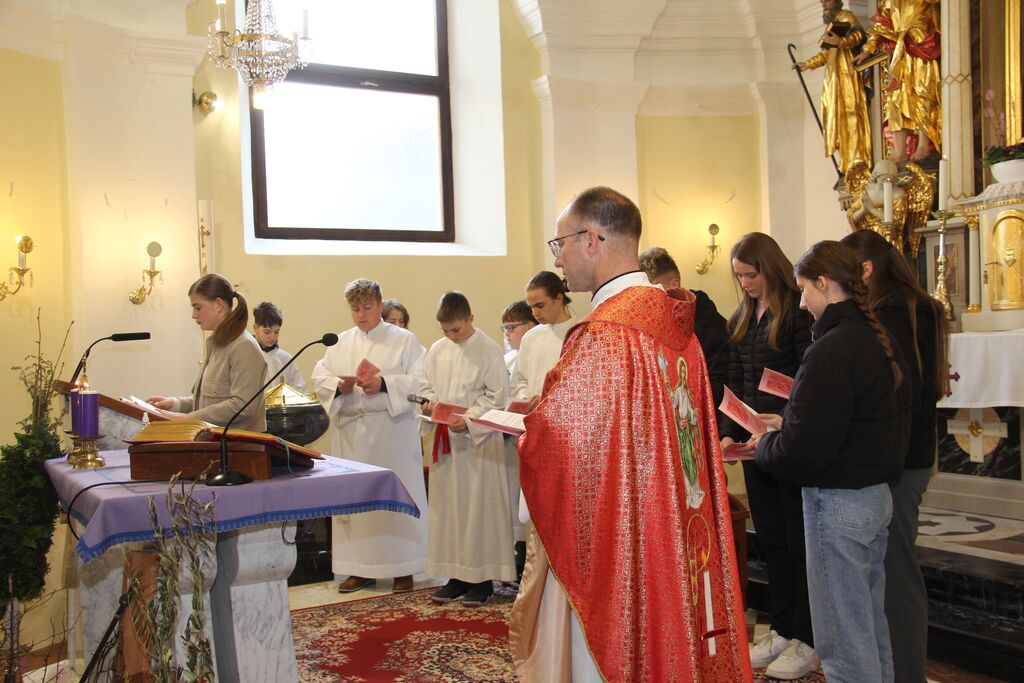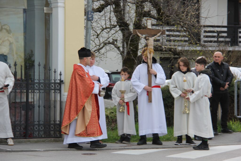 Po obredu so v sprevodu krenili v cerkev, kjer se je nadaljevalo bogoslužje. Gregor Luštrek je blagoslovil še butarico, ki je krasila oltar, nato pa se je sveta maša nadaljevala z branjem beril in pasijona.