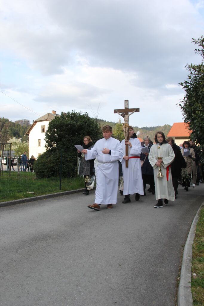 Pri kapelici se je Gregor Luštrek pri blagoslovu zelenja sprehodil po cesti dol in gor, da so blagoslov prejeli prav vsi. Za lepoto obreda so s svojimi glasovi poskrbeli pevci in pevke cerkvenega pevskega zbora, ki ga je vodil Marko Juteršek, v cerkvi pa se mi je na orglah pridružil še Miha Zavrl.