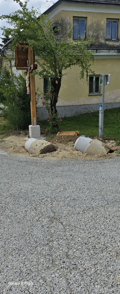 Tako ob gradnji kot ob obnovi so vedno na novo blagoslovljene. Pogosto so znamenja postavljena iz zaobljube za rešitev v stiski ali nesreči. Križ, ki stoji ob Kosovi domačiji je v zadnjem času bil deležen čudovite obnove in je čakal na blagoslov obnovitvenih del. Žal bo na blagoslov moral še malo počakati, kajti neznani voznik, verjetno kakšnega večjega vozila, po vsej verjetnosti tovornjaka, je delo mnogoterih rok v nekaj trenutkih spremenil v kup polomljenih desk in prevrnjenih kamnov, ki so označevali kraj kjer je postavljen, da so se mimoidoči lahko ustavili za trenutek umirili in zmolili kaj zase ali za koga drugega. Kljub poškodovanemu križu naj molitev ne zamre, mogoče tudi za to, da se povzročitelj najde in križ dočaka v vsem sijaju blagoslov.