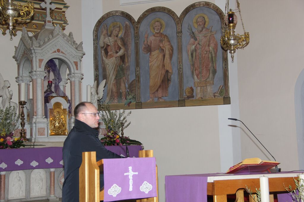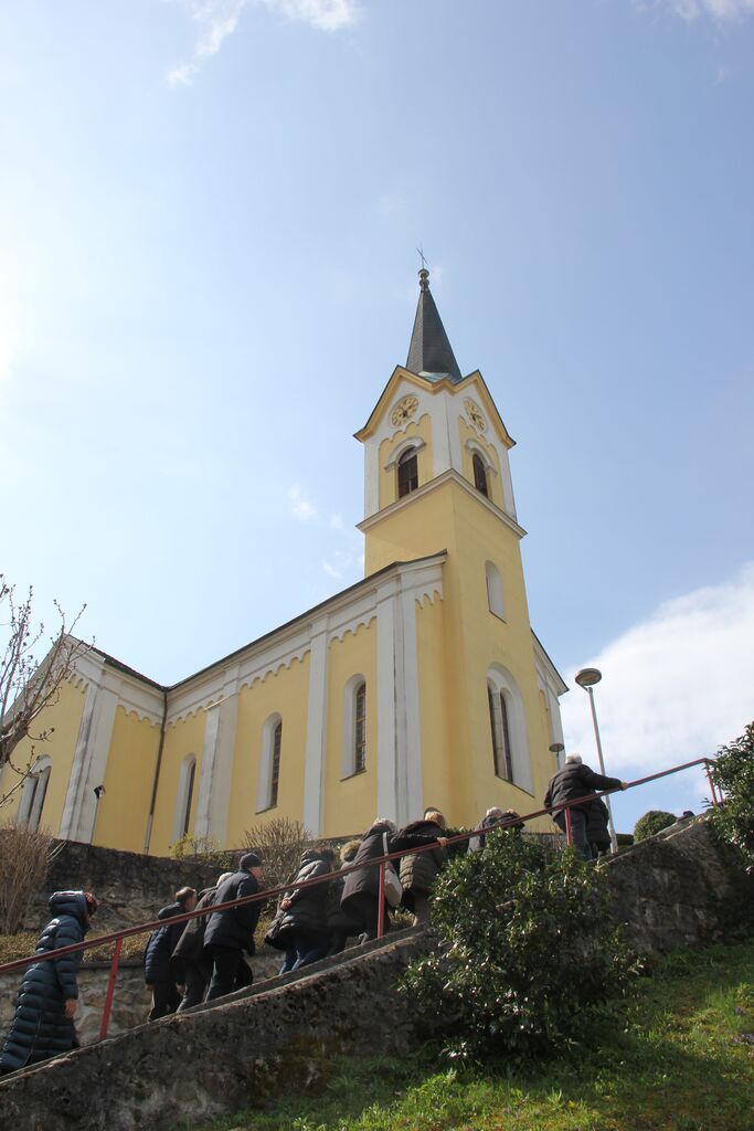 Na poti na Škofjeloški pasijon smo v nedeljo, 29. marca, z avtobusom zavili v župnijo Sora, ki je rojstna župnija Gregorja Luštreka. Že v avtobusu je Bernard Rožman dejal, da je del svojega življenja Gregor preživel na ladji, in res je bilo, saj se naselje, ki sodi pod župnijo Sora, imenuje Ladja, sicer pa so vodo imeli čisto pred svojim nosom in se jim na morje ni bilo treba voziti. Pravijo, da je hoja ravno pravšnja za premišljevanje, in pri hoji po stopnicah, posebno še, če jih je sto, je tega časa več kot dovolj.