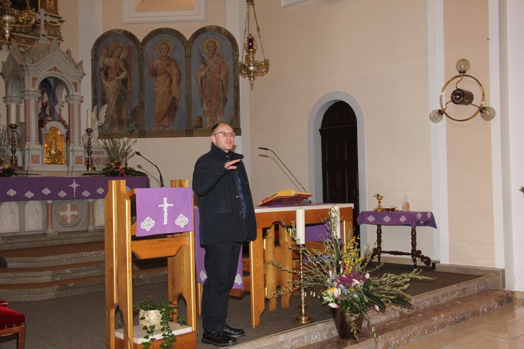 In smo počasi uspeli priti gor k cerkvi svetega Štefana, prvega mučenca, in o zgodovini le-te nam je spregovoril kar Gregor Luštrek. Poleg tega, da k župniji sodijo naselja Sora, Dol, Draga, Gosteče, Pungert, Osolnik, Studenčice, Tehovec, Trnovec, Rakovnik, del Goričan, Ladja, del Zgornje Senice, Spodnja Senica in Svetje z Jeprco, ima župnija še šest podružničnih cerkva. Spoznali smo tudi notranjost ter svetnike, ki so upodobljeni v vitražih, ter se ob pomoči njegove mame Francke seznanili tudi z utripom v župniji.