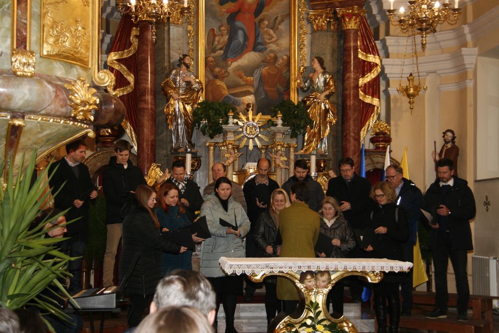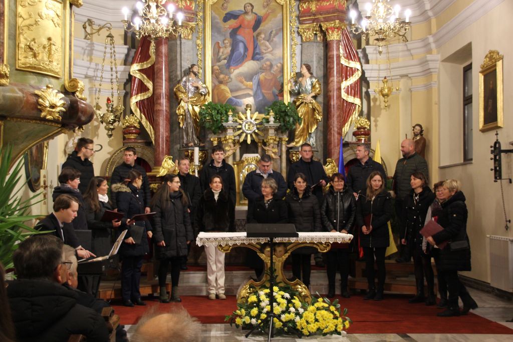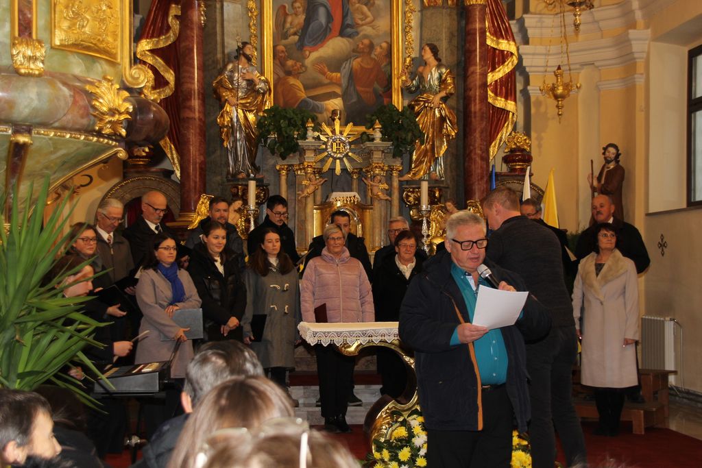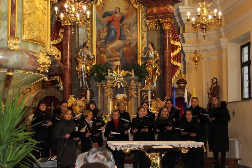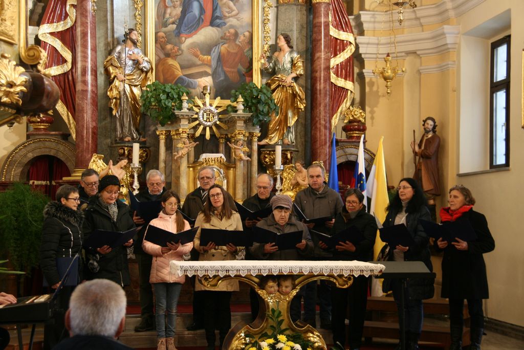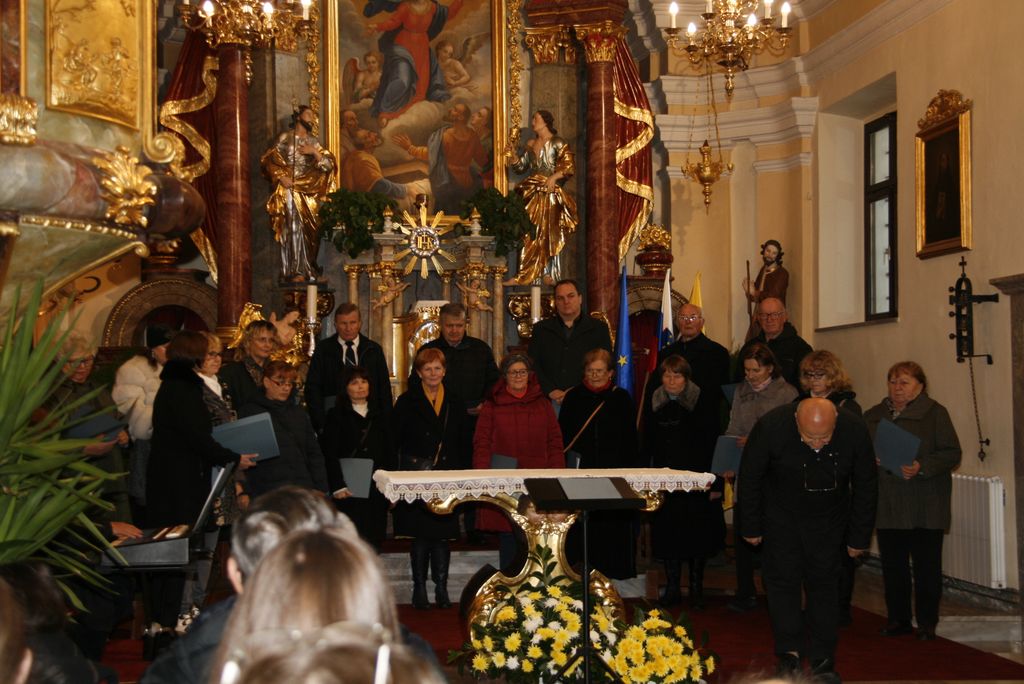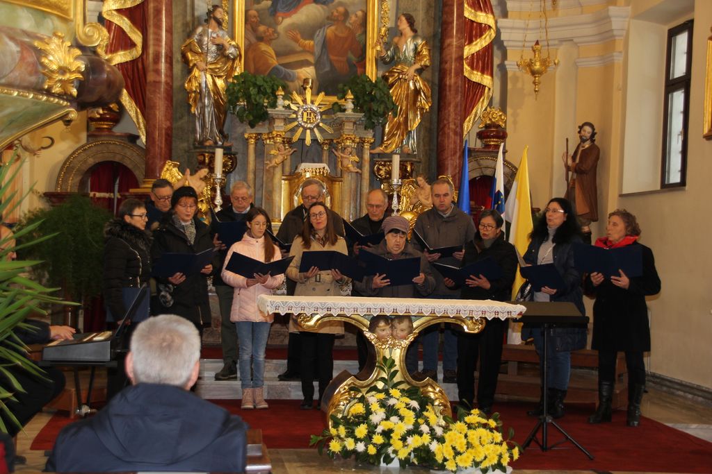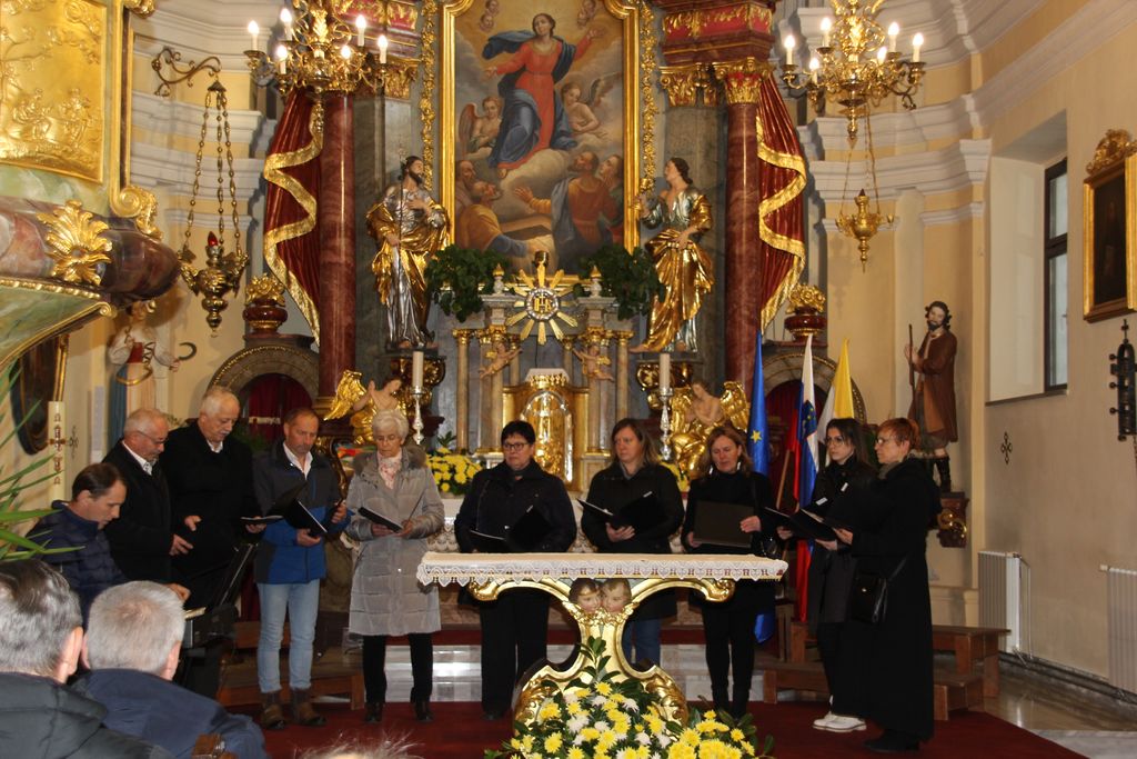 Vseh skupaj, torej pevk in pevcev, zborovodij in organistov, se je nabralo čez dvestopetdeset. Na god sv. Cecilije pred enim letom je v Očetovo hišo odšel zborovodja, dirigent in skladatelj prof. Jože Trošt in pesmi, ki so jih zapeli zbori so bile zapete njemu v spomin. Da so se pevke in pevci lažje zbrali je za uvod na orgle zaigral organist Miha Zavrl nato sta, še preden se je zaslišalo petje, spregovorila Toni Praznik in Anja Avbelj. Če je Toni napovedoval posamezne zbore, sicer v sklopu, se je Anja poglobila v arhive in ugotovila, da so leta 2023 na koru ljubljanske stolnice odkrili dokumente, ki govorijo o prizadevanjih za izboljšanje položaja cerkvenih glasbenikov, ki datirajo v začetek 20. stoletja in prebrala nam je najbolj zanimive prispevke o zborovodjih, pevcih, organistih in tudi duhovnikih. In med njimi do zanimive razlage o nagrajevanju pevcev, ki pravi takole: O kakem pravem plačilu pri pevskem zboru pač skoraj ni govoriti. To je le neka nagrada, ki se daje pevcem. In vendar je tudi ta nagrada potrebna, ako hočeš da veselje ostane. Saj se morejo dovolj truditi. Koliko skušenj, truda, zamude časa in dela je treba, predno se kaj poštenega doseže, zato pa po pravici pristoji pevcem vsaj nekoliko nagrade za njihov trud. In to iz cerkvenega! Saj se pevci vendar ne trudijo za organista, marveč z organistom vred za cerkev, za ljudstvo. V imenu celega ljudstva ravno prepevajo v čast in slavo božjo. Dober župnik pa bo dalje svoje zanimanje za pevski zbor tudi s tem pokazal, da bo ob gotovih prilikah pevce in pevke k sebi povabil na kako »malco« ali kaj podobnega.