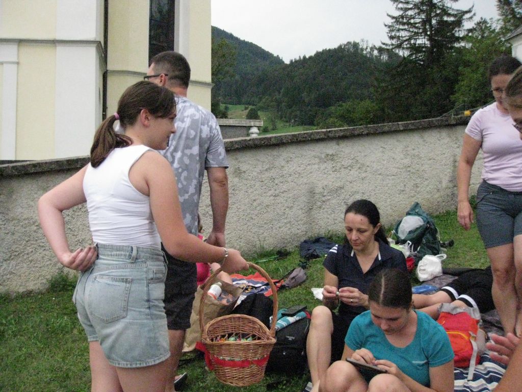 Z avtom prevozimo do cilja  nekaj čez  40 kilometrov, peš pa skoraj polovico manj in romarji so jo, zahvaljujoč se molitvi pred odhodom, srečno in varno prehodili. Ob prihodu so jih prijazni domačini pogostili, saj prazen žakelj pač ne stoji pokonci. Ravno še toliko časa je bilo pred sveto mašo, da so se odpočili, nabrali novih moči in se v cerkvi v tišini priporočili Mariji Zvezdi.