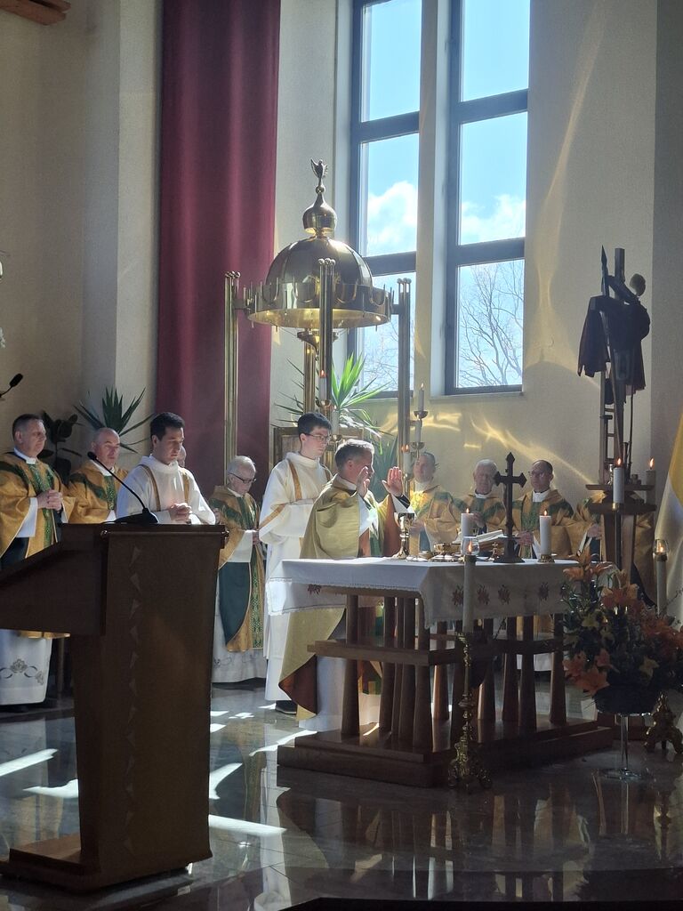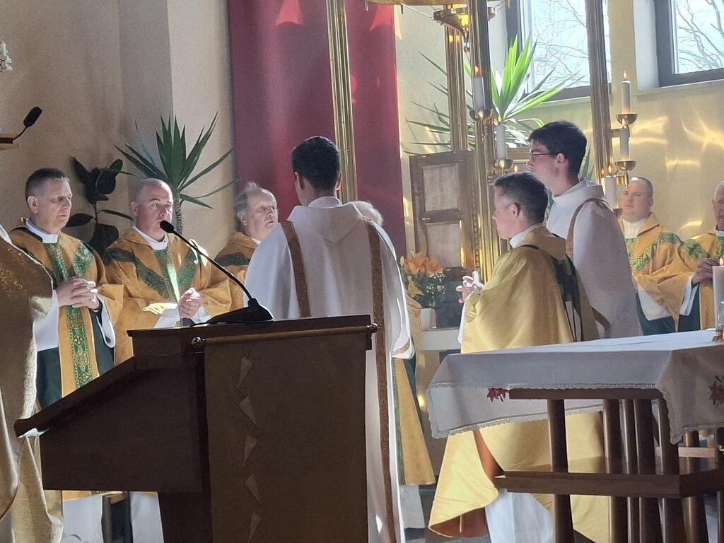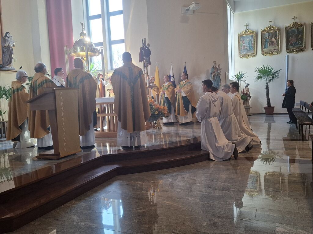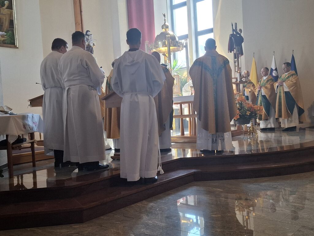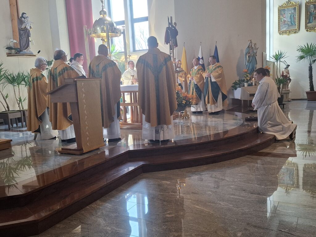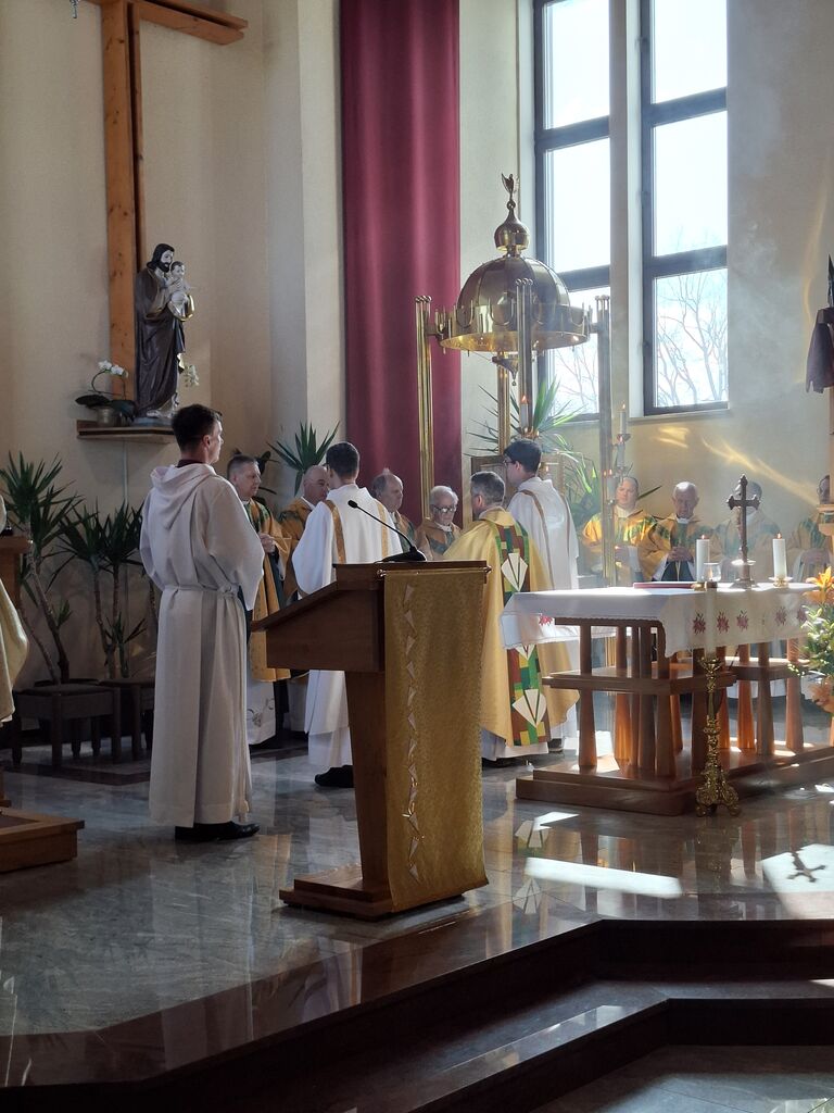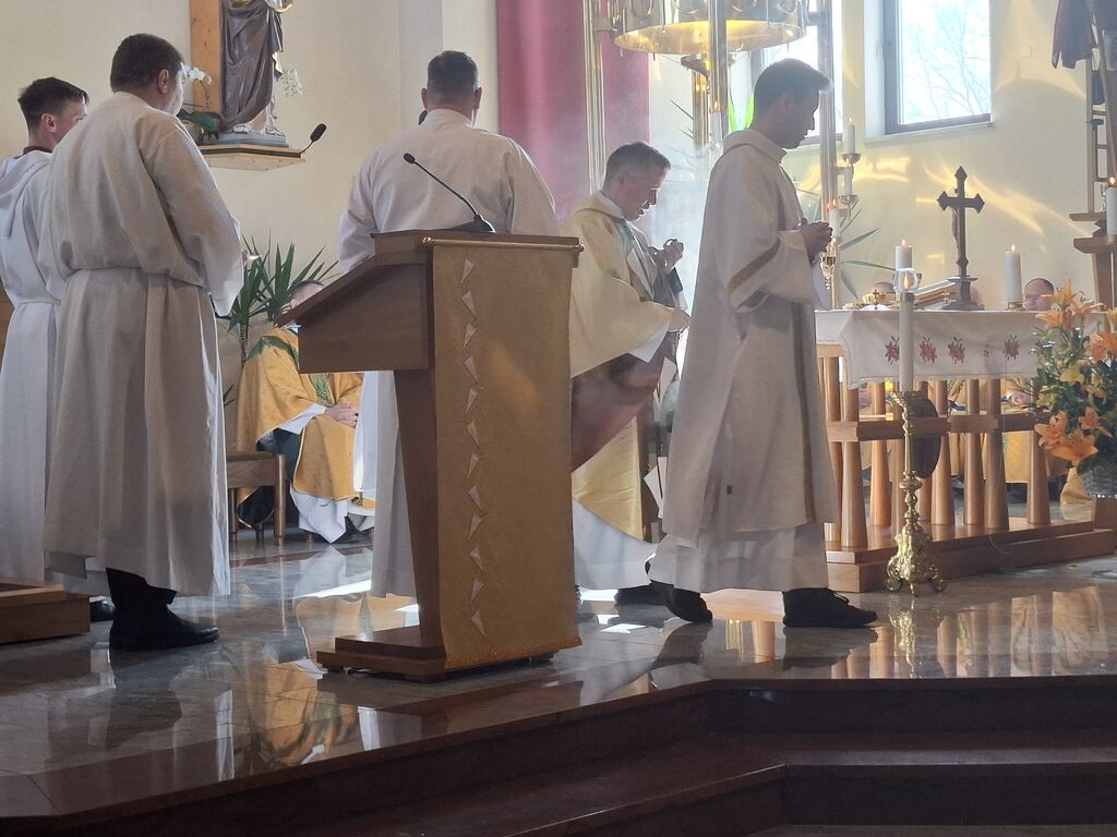 Tokratni 19. marec, ko se slavi god zavetnika svetega Jožefa in obenem župnije Vir, je bil na četrtek, zato je slovesna sveta maša na čast zavetniku slovenskih dežel za blagoslov domovine, za srečno zadnjo uro ter za može in fante bila prav na ta dan. Župnija svetega Jožefa na Viru je najmlajša župnija v dekaniji Domžale in tokrat so k sveti maši, ki se je pričela ob 10. uri, prišli verniki iz vseh koncev dekanije, da počastijo zavetnika virske cerkve sv. Jožefa. Romarje in tudi duhovnike iz cele domžalske dekanije je najprej nagovoril domači župnik Vito Urbanija in ker je sedanja župnija kar nekaj let sodila pod župnijo Dob je sveto mašo daroval župnik Jure Ferlež iz župnije Dob. Svete maše v čast svetega Jožefa na Viru so se poleg domačega župnika in mašnega pridigarja udeležili še duhovnika Bernard Rožman in Gregor Luštrek iz Brda in Krašnje, dr. Boštjan Guček iz Trzina, Marko Košir in Marko Pajk iz Mengša, Miro Šlibar častni kaplan bazilike v Lurdu in član kapitlja lurških kaplanov, mag. Klemen Svetelj in duhovni pomočnik Andrej Svete iz župnije Domžale in Andrej Marko Poznič iz župnije Ihan. Poleg njih sta bila pri oltarju še letošnja novomašnika, sedaj še diakona Gregor Capuder iz Moravč in Luka Anžič iz Ihana. V svojem nagovoru je tokrat Jure Ferlež dejal: Dragi bratje in sestre, ena globoka skrivnost je v tem, zakaj sveti postni čas prekinjamo z dvema pomembnima praznikoma. Cerkev želi, da ko počasi, vedno globlje vstopamo v identiteto Jezusa Kristusa in se po njemu podamo, da v skrivnost Jezusa vstopimo skozi dva, ki sta mu najbližja. In to sta Devica Marija in sveti Jožef. Pa bi se morda lahko vprašali, zakaj potrebujemo ta dva? Ali nismo morda bližje, če se kar direktno odpravimo k Jezusu? Podobno je, kot če opazujemo nočno nebo. Na nek način sta tista dva, ki gledata oziroma eden gleda s prostimi očmi, eden pa z daljnogledom. Enako daleč, ampak daljnogled nočno nebo približa. In ko Marija stoji ob obisku Elizabete: "Moja duša poveličuje" v latinščini "magnificat" pomeni dela večje, dela bližje. In tako se skozi Marijo in Jožefa slika ne popači, ampak izostri. In skozi njiju vstopamo v skrivnost Jezusa Kristusa, njegove smrti in vstajenja, da bi naša slika ostala dovolj ostra in da bi znali priti blizu. Druga misel v današnjem prazniku. Rad bi vam prebral dva odlomka, ki me zelo nagovarjata, pa nista iz današnjega evangelija. Ko pravi v Janezovem evangeliju Jezus, da je kruh iz nebes, kruh življenja, ki prihaja iz nebes, je odgovor takšen: Ali ni to Jezus, Jožefov sin? Njegovega očeta in mater poznamo. Kako more zdaj govoriti: "Iz nebes sem prišel"? In ko pride v Matejevem evangeliju v Nazaret, njegovi rojaki takole odgovorijo: "Od kod temu ta modrost in ta mogočna dela? Ali ni to tesarjev sin? Ali ni njegovi materi ime Marija, njegovim bratom pa Jakob, Jožef, Simon in Juda?" In tako naprej. Čeprav imamo mi vsi Jezusa za izjemno osebnost, pa v očeh njegovih rojakov Marija in Jožef nista bila nič izjemna. Celo drugače, preveč preprosta, da bi razumeli njuno in Jezusovo skrivnost in posebnost. In to nas danes uči: Kdor ostane slep za preprostost, ostane slep za Boga. In imenitnost Jezusa Kristusa doživljamo tudi tako tudi takrat, ko doživljamo imenitnost njegove deviške matere in njegovega deviškega varuha, da vstopamo skozi Marijo in Jožefa k Jezusu. Zato vera, ki jo danes tukaj izkazujemo, pomeni narediti korak dlje od površnosti, ki so si jo privoščili rojaki v Nazaretu. Pomeni stopiti v notranjost in v navadnem, preprostem videti Božje sile, Božje stopinje. Tretjič, večkrat slišimo, da Jožef v Svetem pismu ne spregovori, da je tiho. V zgodovini teologije se je pojavila misel, da Bog Oče krušnemu sinu vzame krušnemu očetu svojega sina, vzame besedo, vzame možnost govorjenja. Pa je to Cerkev razglasila za napačno. Jezus se umakne, Jožef se umakne, da Jezus raste podobno kot pri Janezu Krstniku. On utihne, da da prostor besedi. Svoje besede umakne, da spregovori, ta Božja beseda. In konec koncev, to je tudi naša postna vaja: umakniti se Kristusu tako, omehčati svoj ego na način, da bi skozi naša usta, skozi naš zgled spregovorila Božja beseda, Jezus Kristus sam. In da bi lahko v našem govorjenju, v našem zgledu prepoznali tistega, ki mu služimo in ki je naš sodnik, odrešenik in stvarnik. Utihne, da da prostor Jezusu. In zadnja misel današnjega praznovanja. Trinajstletni deček ostane po prazniku v Jeruzalemu. In Marija in Jožef ga tri dni iščeta. Umakne se jim. Umakne se od očetovega hiše. In ko se po treh dneh znova najdeta, Marija in gotovo tudi Jožef, besede, ki jih Jezus govori, ohranita v svojem srcu. Naslednjič, ko se Jezus za tri dni umakne, je v času velikonočnega trodnevja. Umakne se, gre v tako imenovan šeol iskat starozavezne pravične in jih potem z vso silo, z vso močjo Boga, ki vstaja od mrtvih, privede v večnost. Ampak Matejev evangelij gre še celo morda en korak naprej. Matej pravi, da ko Jezus umre, da začnejo grobovi, da se začnejo grobovi odpirati in da začnejo vstajati pravični Stare zaveze in se celo začnejo prikazovati v Jeruzalemu. In to nam daje, pa ne samo nam, celotni Cerkvi eno zadoščenje tudi v odnosu do svetega Jožefa. Čeprav Jezus pravi, da je Janez Krstnik največji v Stari zavezi, smo lahko prepričani, da je v tistem šeolu največja zvezda gotovo svet. In da ko Jezus pelje pravične v svojem vstajenju v odrešenje, da se tam med tistimi, ki se takole v Jeruzalemu prikazujejo, tudi sveti Jožef. In lahko smo prepričani, da Jezus potem v svojem odrešenju znova združi tako prvo pričo vstajenja, ki je Devica Marija, kot tudi pravičnega iz Stare zaveze, ki je sveti Jožef. In ki je v nekem šeolu čakal to odrešenje. In kjer je sveta družina, tam so bratje in sestre. Tam ni prostor za smrt, tam je prostor za življenje. In potem svete družine se upodabljajo tudi v današnjih družinah, da 