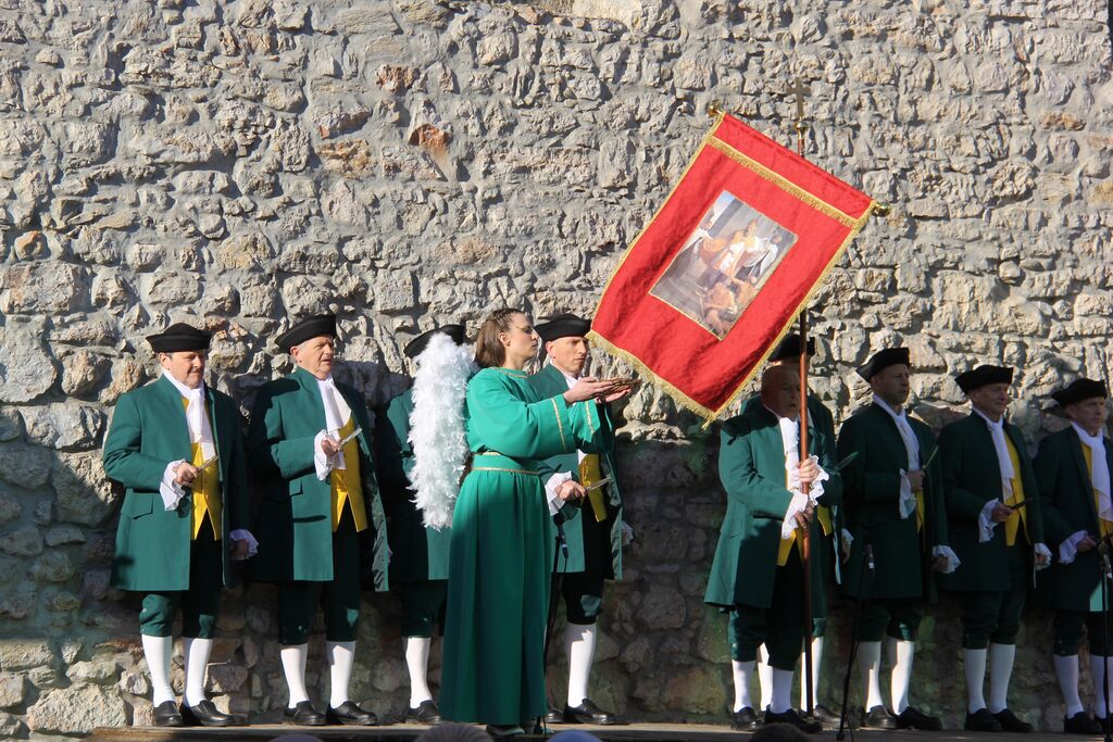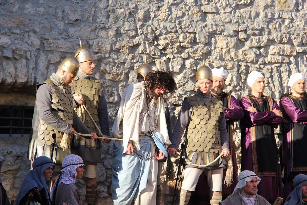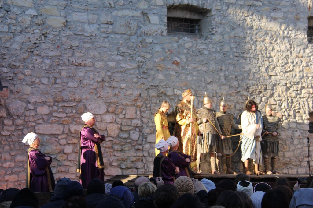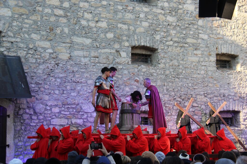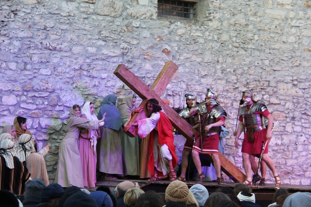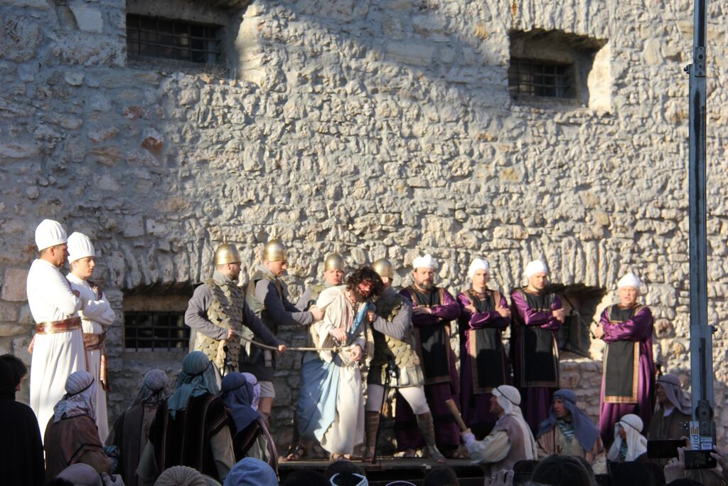 V nedeljo, 29. marca, smo se iz župnij Brdo in Krašnja odpravili v idilično staro mestno jedro Škofje Loke, kjer v teh dneh pred veliko nočjo uprizarjajo delo, ki ga je okoli leta 1715 do 1722 napisal kapucin pater Lovrenc Marušič, bolj poznan pod redovnim imenom oče Romuald iz Štandreža, in ki v 20 slikah, ki se zvrstijo pred gledalci, predstavi zgodbo, ki si jo je vredno ogledati in doživeti.