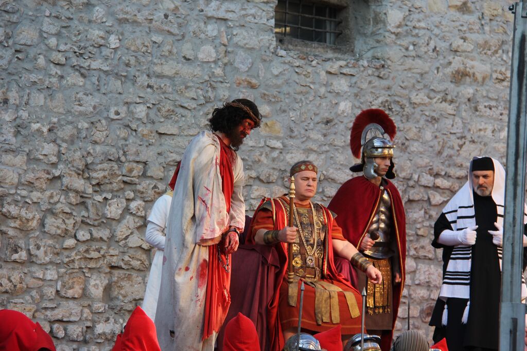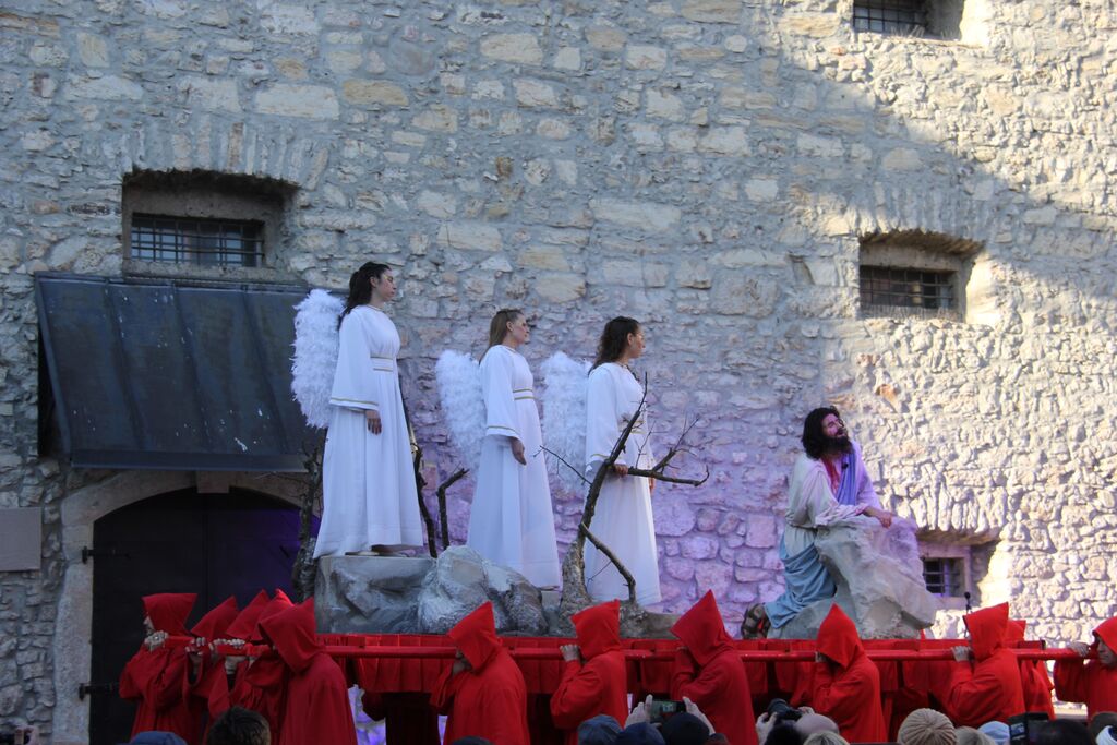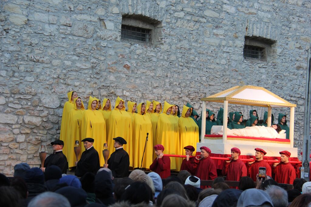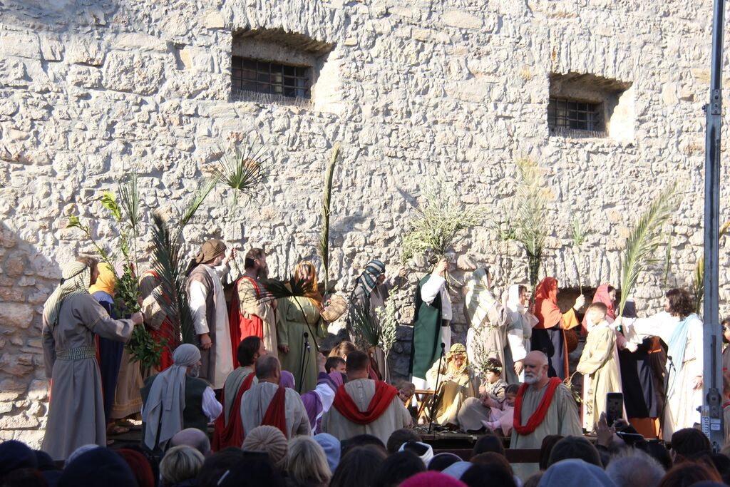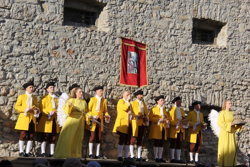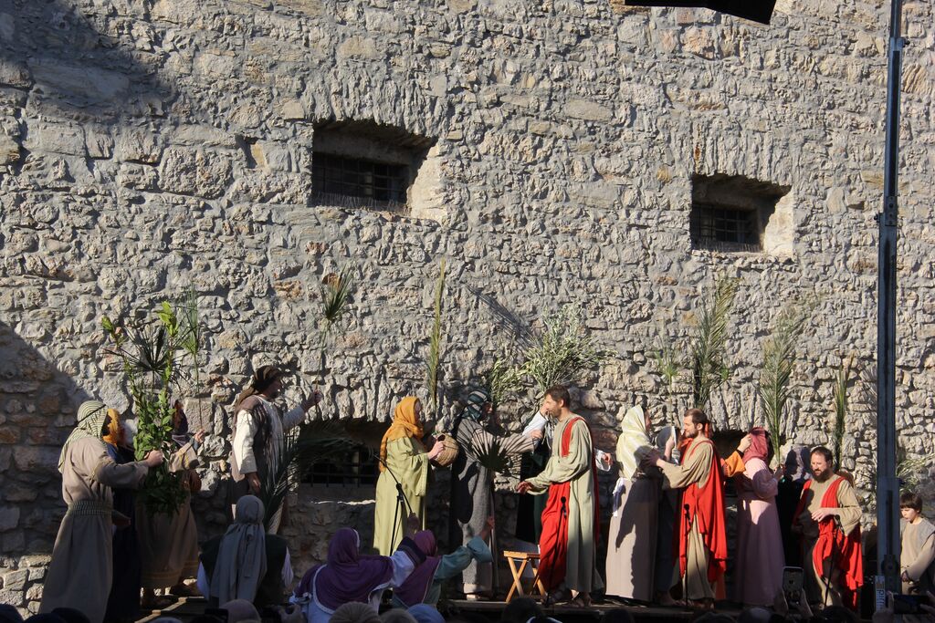 V nedeljo, 29. marca, smo se iz župnij Brdo in Krašnja odpravili v idilično staro mestno jedro Škofje Loke, kjer v teh dneh pred veliko nočjo uprizarjajo delo, ki ga je okoli leta 1715 do 1722 napisal kapucin pater Lovrenc Marušič, bolj poznan pod redovnim imenom oče Romuald iz Štandreža, in ki v 20 slikah, ki se zvrstijo pred gledalci, predstavi zgodbo, ki si jo je vredno ogledati in doživeti.