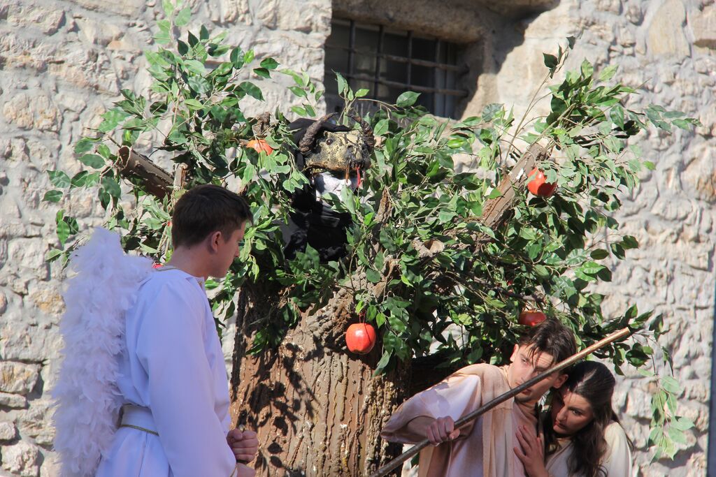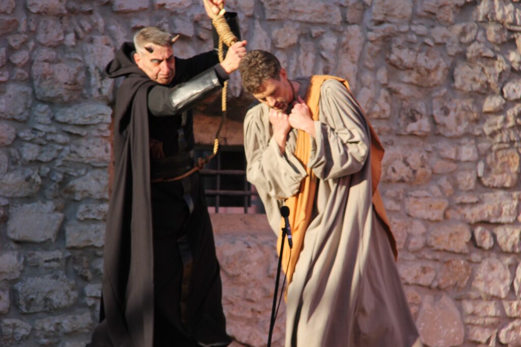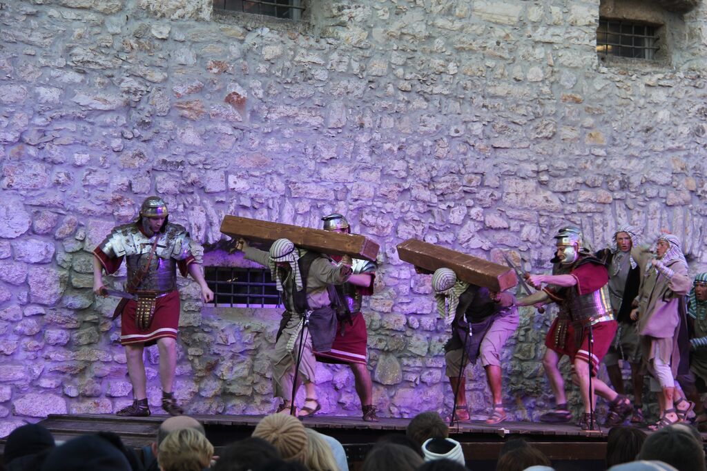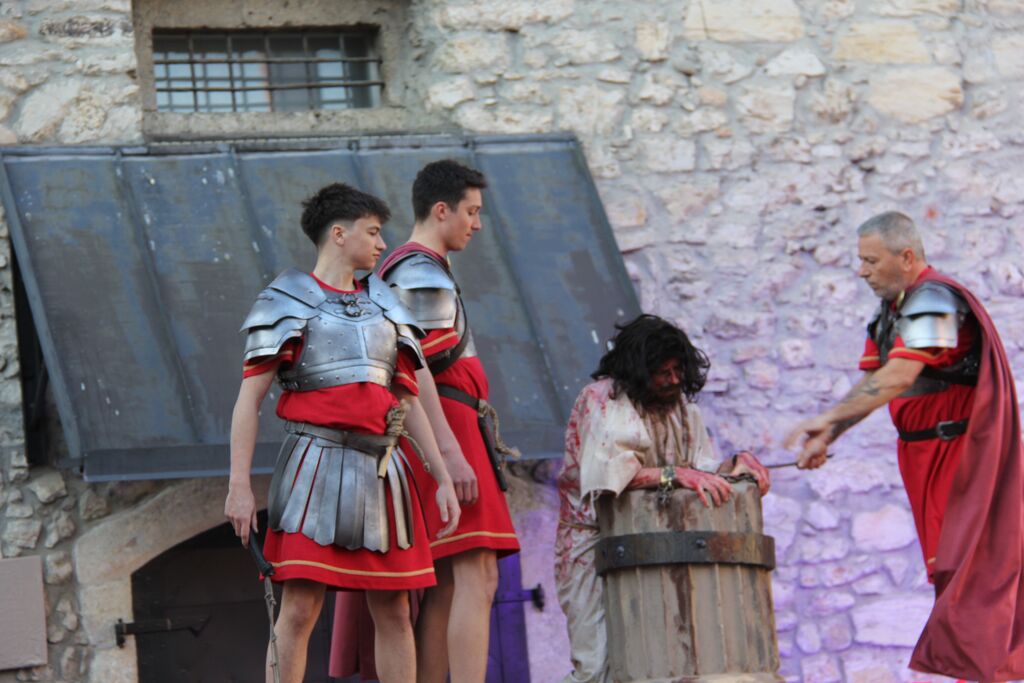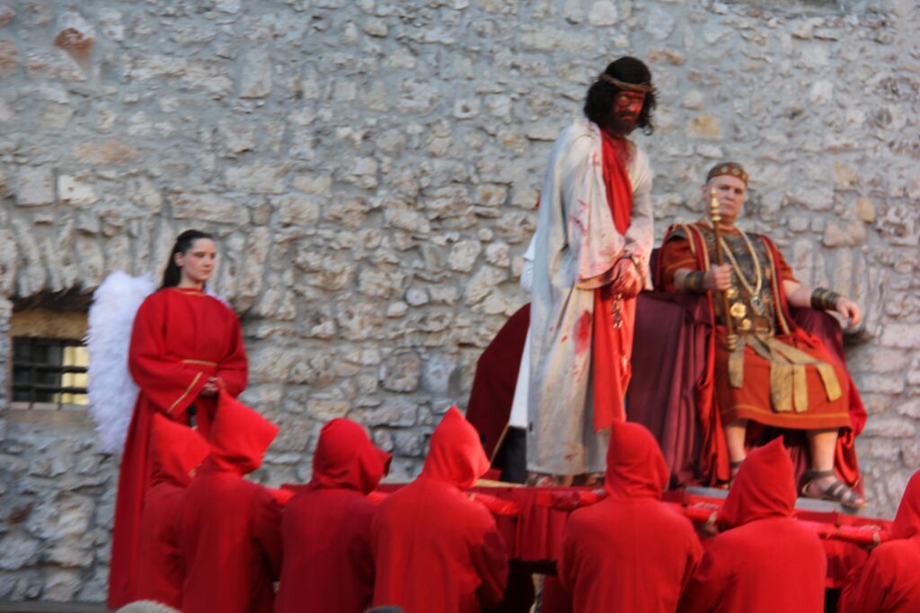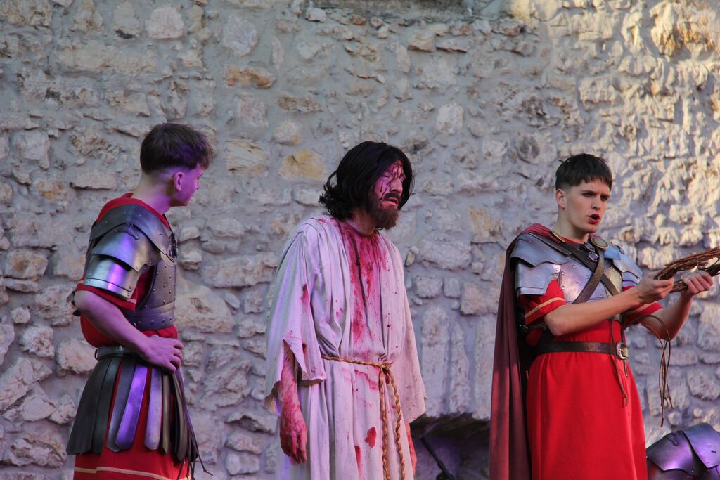 V nedeljo, 29. marca, smo se iz župnij Brdo in Krašnja odpravili v idilično staro mestno jedro Škofje Loke, kjer v teh dneh pred veliko nočjo uprizarjajo delo, ki ga je okoli leta 1715 do 1722 napisal kapucin pater Lovrenc Marušič, bolj poznan pod redovnim imenom oče Romuald iz Štandreža, in ki v 20 slikah, ki se zvrstijo pred gledalci, predstavi zgodbo, ki si jo je vredno ogledati in doživeti.