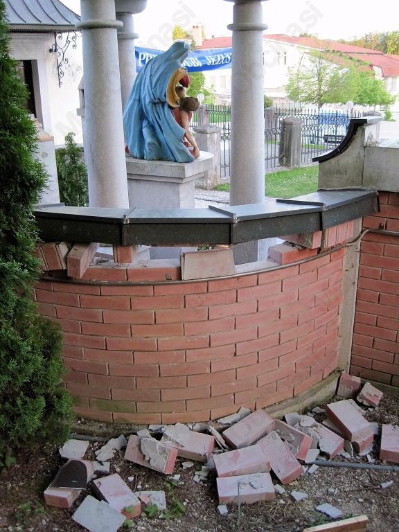 Preobrazbo v slabem, saj so neznanci v noči iz petka 8. na soboto 9. maja ne samo odstranili bakreno pločevino iz samega znamenja,ampak tudi dobro poškodovali del tega. Poleg tega so odtujili tudi žlebove iz objekta na samem pokopališču. Stroški popravila bodo višji, ker so, da bi odtujili še preostalo bakreno pločevino poškodovali tudi zid. postavlja se vprašanje je na tem svetu še kaj svetega? Toliko časa so pokojni iskali svoj mir, nekateri ga še sedaj niso našli, spet drugi pa ga tistim, ki so ga našli kratijo. In če sem nekoč v zvezi z znamenjem  zapisal:" Kako je s dušami  tistih, ki so poboje počeli pa vedo oni sami....." dodajam samo še :"Kako je  z dušami tistih, ki so tokrat motili mir umrlih za nekaj evrov?"