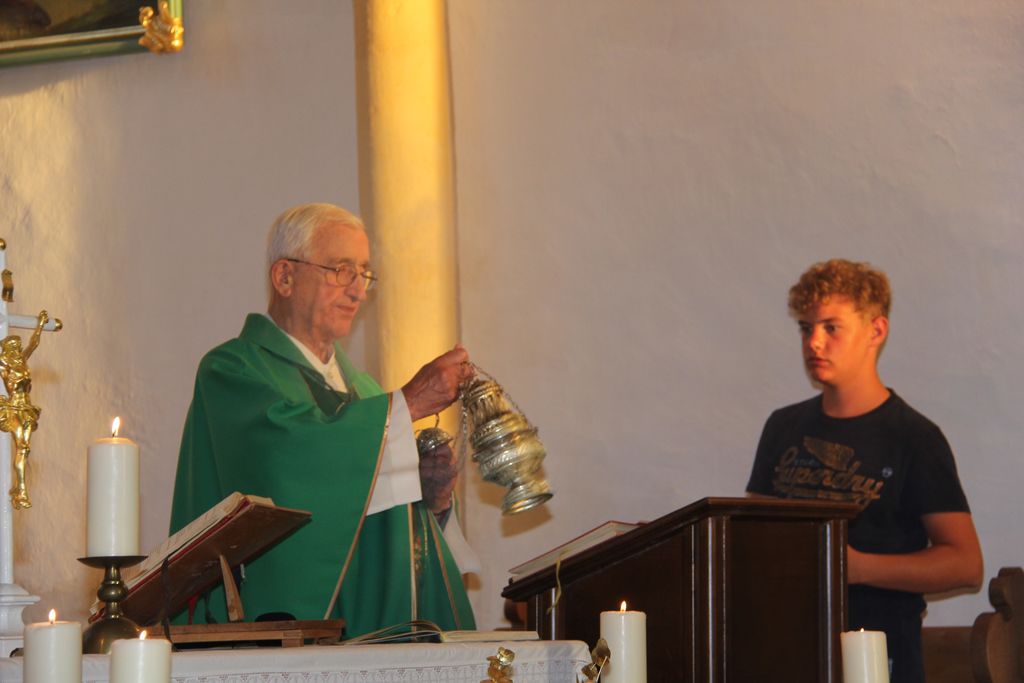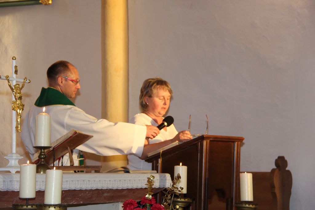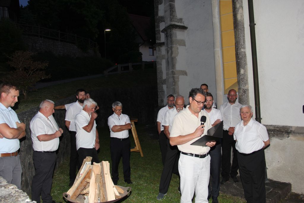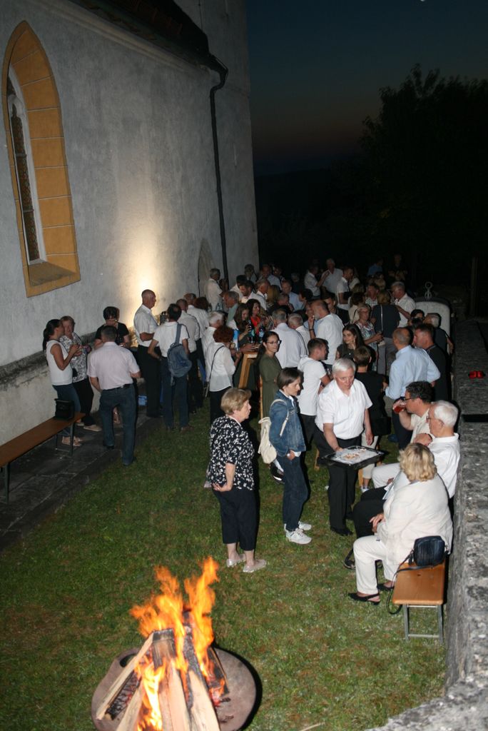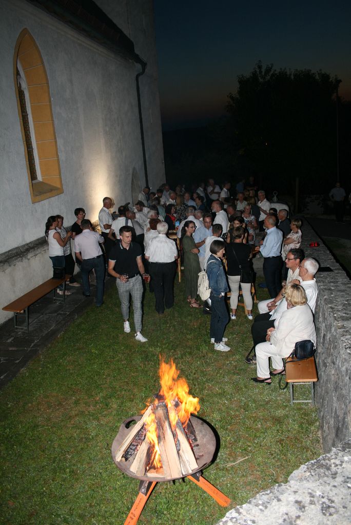 Matevž Kink je zbranim spregovoril o zgodovini cerkve, ki letos praznuje 500 letnico in to vse od njenega nastanka do danes. Večer se je zaključil s prijetnim druženjem, saj je vročina popustila in mize, ki so bile polne dobrot so kar vabile, da so okrepčamo in se okrepčani zadržimo še malo dlje tudi zaradi prižganega kresa. Svete maše za domovino se je poleg številnih faranov udeležila tudi županja mag. Olga Vrankar.