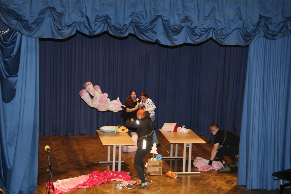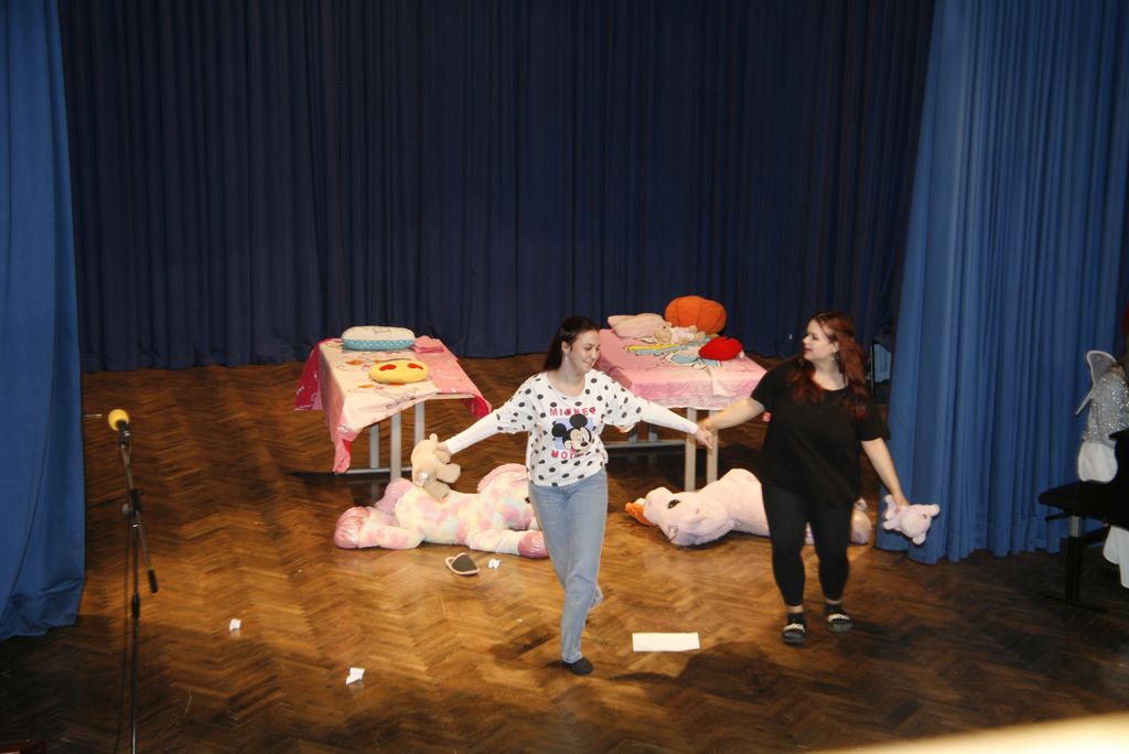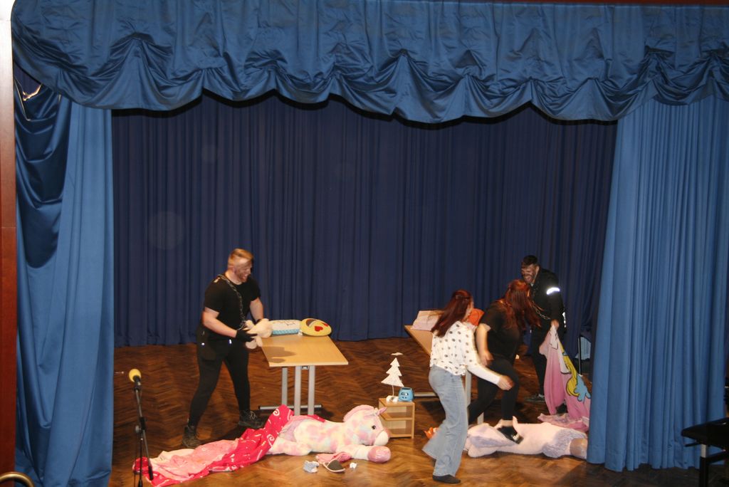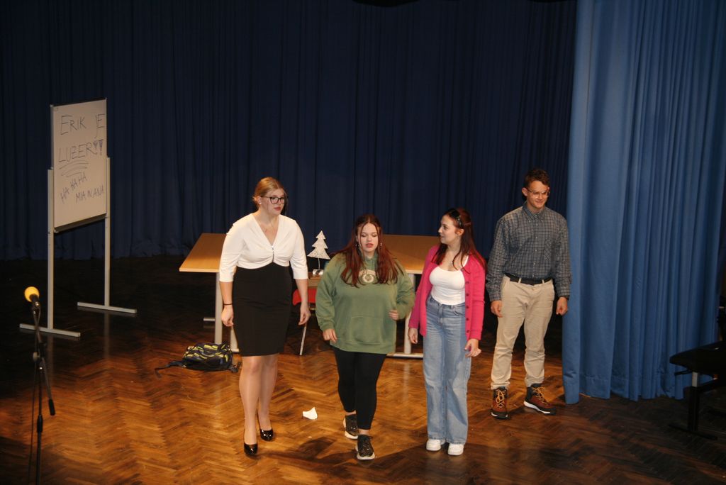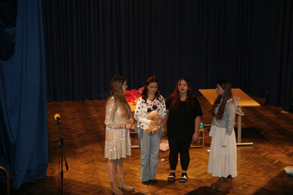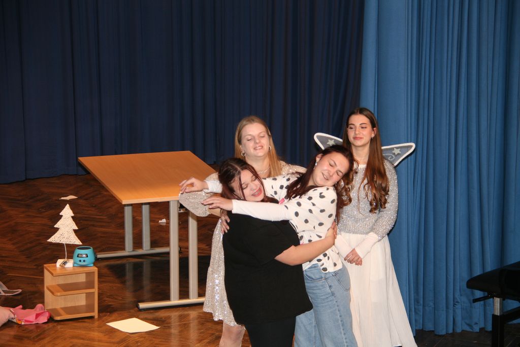 Igralci so ob pomoči vseh v dvorani priklicali tudi svetega Miklavža, a so zaradi njegovega spremstva, ki ni ravno na najboljšem glasu, hitro pobegnili z odra. Sveti Miklavž je najprej zbrane povprašal po molitvi in kaj hitro ugotovil, da mladi zanjo še kako dobro moliti. Zato je najprej obdaril veroučence prvega in drugega razreda in potem razdelil darila še vsem ostalim. Brez darila nista ostala niti župnik Bernard in duhovni pomočnik Gregor, ker sta si ga, kot je dejal Miklavž s svojim delom zelo zaslužila.