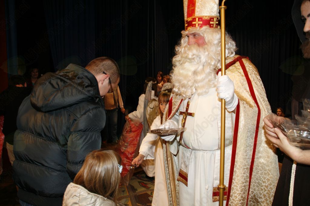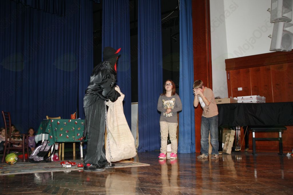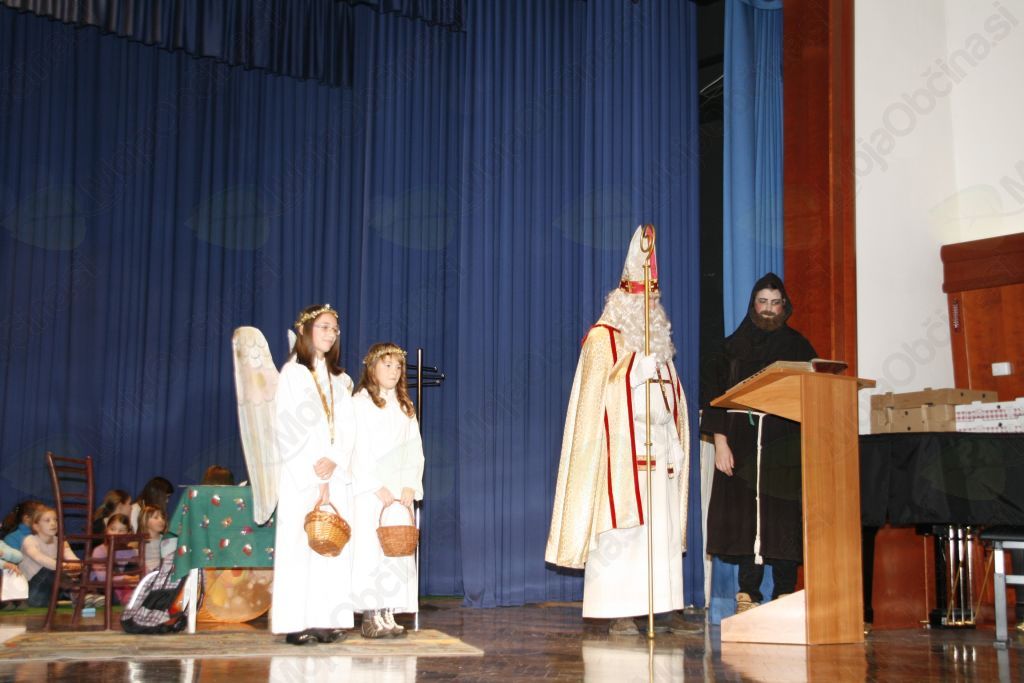 Čeprav je v preteklem letu sv. Miklavž nekaj zmajeval z glavo, še bolj pa sveti Anton, da je v knjigi vse preveč črnih pik, sta letos vseeno tudi prišla v naše kraje. Kaj se dogaja v marsikateri hiši na Miklavžev ali kak večer prej so nam na v kratki igrici na odru kulturnega doma Janka Kersnika pokazali mladi igralci. Prav zanimivo je bilo primerjati dogajanje z razmerami doma, Ja zelo podobno se godi doma. Še sreča , da ne povsod. Pa je prišel tudi tokrat sveti Miklavž skupaj z zlobnim parkeljem , ki pa ga je sv. Miklavž že pred dvorano dobro poučil, da ja ne bo počel neumnosti, da ne bo takšen kakor Martin in Nataša iz igrice. S knjigo dobrih del je prisopihal še sveti Anton pred njim pa sta prišla dva angelčka, ki smo ju opazili že med igro, ko sta pokukala v sobo Martina in Nataše in se zgrozila nad njunim pismom. In je sveti Miklavž poklical k sebi otroke najprej drugega razreda in župnika Andreja, da so povedali kaj so se pri verouku naučili. Tudi otroci prvega razreda so zapeli in navdušili, bolj tiste na odru, kakor tiste v dvorani, saj so v dvorani vsi že nestrpno čakali, da pridejo na vrsto in prevzamejo darilo. Potem so bili na vrsti vsi ostali žal po sistemu kdo bo prej in kdo bo šel prej domov. Tisto pravo domačnost in potrpljenje pa že tako nekaj let sv. Miklavž zelo pogreša . Dvorana je po nekaj minutah prazna in sv. Miklavž lahko pomaha v slovo le še redkim , ki si vzamejo čas in počakajo do konca, do njegovega odhoda. Tudi letošnji obisk sv. Miklavža je ob pomoči Občine Lukovica, Krajevnih skupnosti in mnogih drugih dobrotnikov pripravila župnijska Karitas Brdo -Zlato polje. Zborček je za nastop pripravila Petra Avbelj, igralce pa Marija Juteršek.