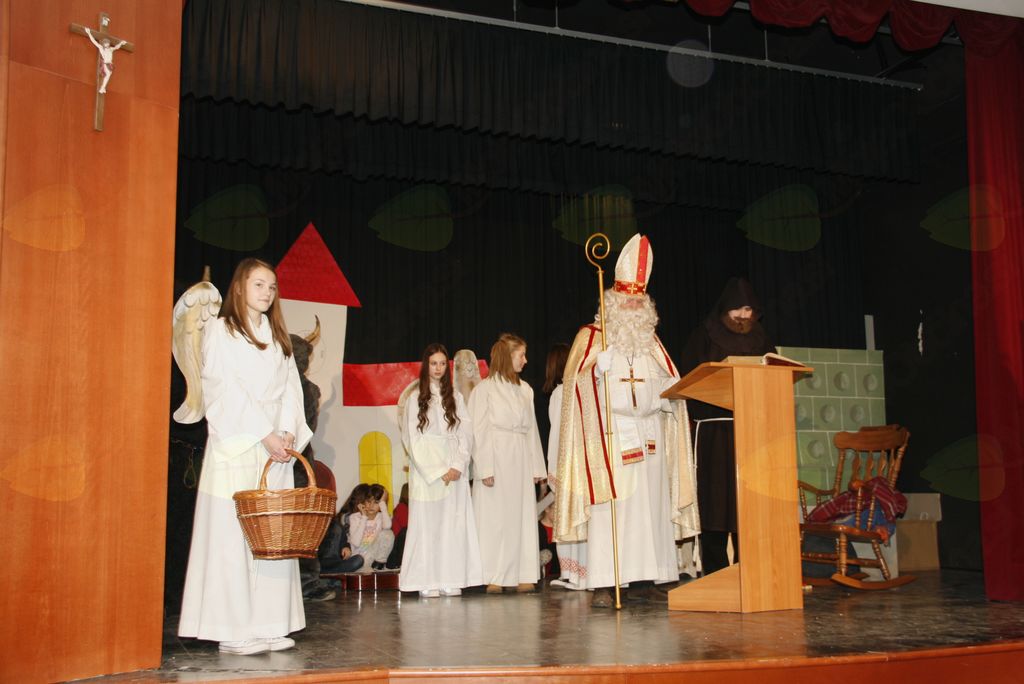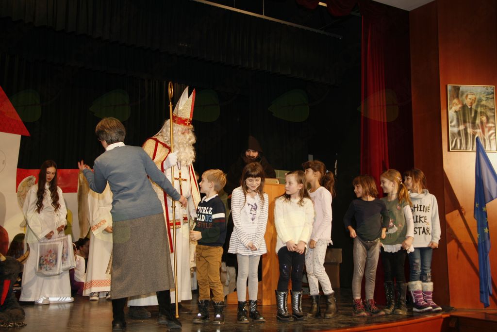 V torek 5. decembra, ko se je sonce skrilo za obzorjem  je v dvorani kulturnega doma Antona Martina Slomška v Šentvidu pri Lukovici  sveti Miklavž obiskal in obdaroval pridne otroke. Poleg njega samega so z njim vedno še  angeli in parkelni oziroma hudobci, v pomoč mu priskoči še otroški cerkveni zborček pod vodstvom Petre Avbelj, ki je nekaka stalnica Miklavževih obiskov.  Letos se jim je pridružil še župnik Pavle Okoliš, ki je zbrane na začetku najprej pozdravil in jim je nato dejal, da so z svojim prihodom pokazali, da verjamejo v svetega Miklavža, tako otroci kot starejši. Nato je spregovoril še o njegovem življenju, delovanju in začetkih njegovega obdarovanja. Zbrali smo se da bi počastili njegov spomin in  se razveselili, da ga bomo lahko videli. Še prej bomo prisluhnili programu, ki so ga pripravili mladi. Preden  pričnemo z programom začnimo to srečanje v znamenju križa. Zastor se je odgrnil in na oder so prišli pevci in pevke otroškega pevskega zborčka z zborovodkinjo Petro Avbelj, ki so zapeli pesem o svetem Miklavžu. Nato smo se preselili, sicer samo v igrici, k babici, ki  zna povedati toliko pravljic in eno izmed njih je povedala tudi svojima vnukoma. A prisluhnili smo ji vsi v dvorani.  Pravljica je bila sicer  na las podobna dogodkom, ki se dogajajo v mnogih naših domovih, ko bratci nagajajo sestricam, ali obratno, le, da se je ta dogaja v  nebesih. Pridni angelčki so urejali pisma, ki so jih prijeli od otrok za svetega Miklavža , ter pripravljali darila. Hudobci, ali parkeljni so se takole iz žlehtnobe odločili, da jih skrijejo in zato je v nebesih zavladal preplah. Angelci so švigali sem ter tja in gor in dol in iskali pisma, saj se je bližal dan, ko bodo skupaj z svetim Miklavžem odšli na zemljo deliti pridnim otrokom darila, a pisem ni bilo nikjer. Ker vsi parkeljni le niso zlobni, saj je v vsakemu kanček dobrote, je najmlajši parkelj povedal kam so skrili pisma in angelci so lahko pripravili darila. Pravljica se je srečno končala, vnuka sta med tem napisala pismo svetemu Miklavžu in po njiju je prišla mamica. Na oder so ponovno stopili pevci in nam zapeli še eno pesem. Nato  je v dvorano vstopil sveti Miklavž skupaj  z spremstvom in zaradi parkeljnov je zavladala manjša panika, bolje preseljevanje iz ene na drugo stran, a je šlo. Sveti Miklavž je zbrane otroke lepo pozdravil, jim malce razložil glede črnih pik in svetlih zvezdic v knjigi , ki jo nosi sveti Anton, ter jih povprašal, če so lahko tudi oni Miklavži. No sveti še ravno  ne, samo Miklavži pa že. In jim je nato razložil, če imaš ti tri bombone, tvoj prijatelj pa ne  in mu ti daš enega potem si že Miklavž.  Prišel je radostni trenutek, ko so otroci iz rok svetega Miklavža sprejemali darila in ker so starejši bolj korajžni so najprej na vrsto prišli otroci, ki obiskujejo  drugi razred. Ti so skupaj z katehistinjo zapeli in si zaslužili aplavz ter darilo. Nekaj sem pustil še doma, jim je prišepnil dobrotnik sveti Miklavž. Malce bolj plaho so oder prišli tisti iz prvega razreda, a se na koncu lepo pogovorili z svetim Miklavžem in tudi oni so bili deležni darila in spodbudnih besed, kar se marljivosti pri verouku in v šoli tiče. Nato pa vsi tisti, ki se skoraj nič niso bali parkeljnov, ker so jih imeli starši ob sebi, če že ne v naročju, kajti nikoli ne veš kdaj in kaj lahko naredi tisti hudobec. Nekateri so se za srečanje še posebej pripravili in svetemu Miklavžu narisali risbico in povedali pesmico. Ko je podelil vsa darila otrokom, je obdaril še  pevce in pevke za njihov trud in v spodbudo, da zapojejo še prihodnje leto, ko ponovno zaide v naše kraje. Tudi letos je prišel in obdaroval otroke na povabilo župnijske Karitas, ki ji je ob strani z finančno pomočjo stala Občina Lukovica in posamezni majhni Miklavži oziroma dobrotniki. Sveti Miklavž je skupaj z svojim spremstvom odšel, nam pa ostaja preko celega leta njegovo sporočilo: Bodite Miklavži tudi vi.