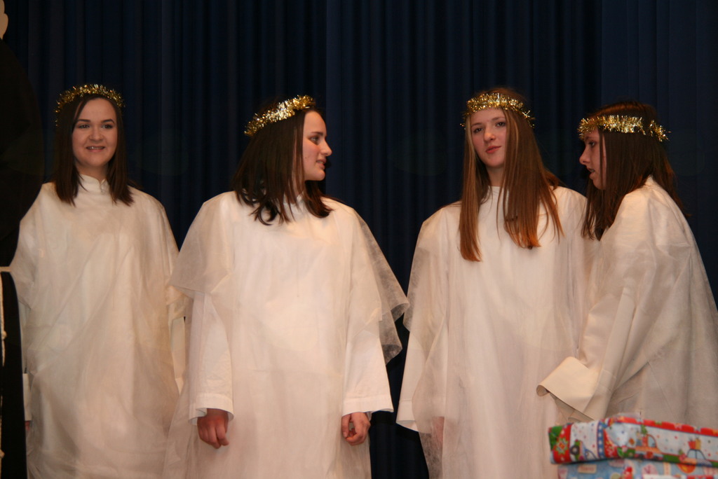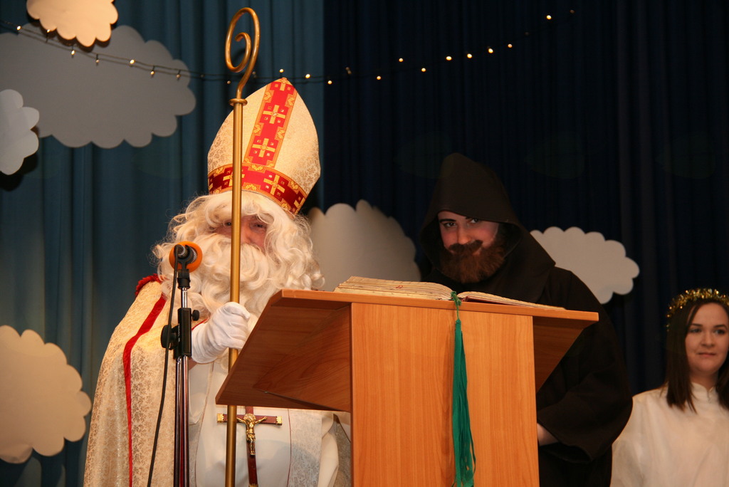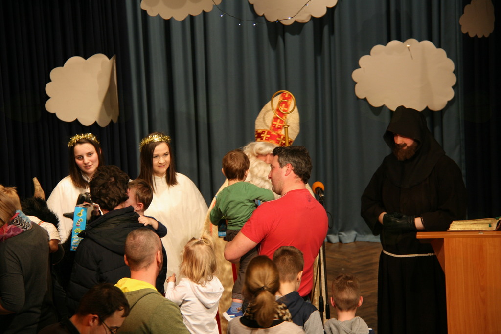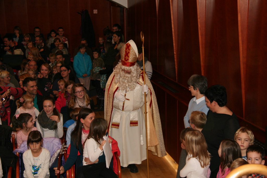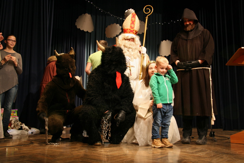 Na povabilo župnijske Karitas Brdo Zlato Polje in ob pomoči Občine Lukovica in posameznih donatorjev, ki jih je iz leta v leto manj je k nam v Lukovico na svojem potovanju po deželi Slovenski prišel sam sveti Miklavž z spremstvom. Tokrat so za malce bolj sproščeni uvod v srečanje poskrbeli oratorijski animatorji z igrico Zmeda v nebesih in otroški cerkveni pevski zborček z inštumentalisti pod vodstvom zborovodkinje Petre Avbelj. V igrici smo spoznavali kako je, če se angelci ne potrudijo in so pri svojem delu malce preveč zaspani, saj jim takrat parkeljni kaj radi ponagajajo. Čisto mirno idilo nebeških višav je tokrat predramil angel Serafinček s tem, da je prebudil druge angele. Kajti pripraviti bi morali darila za svetega Miklavža, ki bo odšel obdarovat pridne otroke, oni pa nimajo še nič pripravljenih. Angelci se odpravijo pakirati darila, a delo jih utrudi in ponovno zaspijo. Med tem dva hudobca zamenjata imena na darilih z imeni otrok, ki so pridni, z imeni otrok, ki niso ubogljivi in pridni. Pri delu jih ujamejo angelci, ki se med tem prebudijo in zadevo vzamejo v svoje roke, malce trše in hudobca morata popraviti vse kar sta narobe storila. Darila bodo tako romala v roke pridnim otrokom. Angelci so se ob tem naučili, da če nisi buden, ti kaj hitro poredni parkeljni zmešajo štrene. Ko je zborček prepeval je v prepolno dvorano kulturnega doma Janka Kersnika v Lukovici prišel sveti Miklavž z spremstvom, ter ob pozdravljanju najmlajših prisluhnil tudi petju. Da lepo pojejo in, da so marljivi je povedala zborovodkinja in zato se je odločil, da na koncu, ko obdaruje vse otroke obdaruje še pevce in pevke zborčka, saj si zaslužijo. Malce je ponovno potarnal, kar se tiče pridnosti, ki je v visokem porastu zadnjih nekaj dni pred njegovim prihodom in zbledi ob njegovem odhodu. Nato je poklical k sebi najprej učence prvih razredov skupaj z katehistinjo in nato drugih razredov z njihovo katehistinjo. Učenci prvih razredov so mu naredili kar album in mu še zapeli učenci drugih pa zmolili, tudi za tiste v dvorani, ki so že malce pozabili na večerno in jutranjo molitev. Da o molitvi pred jedjo ne pišem. Letos si je vzel veliko več časa za pogovor z posameznimi otroci in starši, ter marsikomu povedal, kaj je storil narobe in kaj prav. Med pogovori je beseda nanesla tudi na pisma, ki jih pišejo otroci in na njihove nemogoče želje. Nato je poklical še domačega župnika, da bi ga spoznal in mu dal skromno darilo, a ga žal ni bilo v dvorani, bo pa prihodnje leto prejel darilo, če bo utegnil priti. Nato je obdaroval še pevce in pevke, ter zborovodkinjo se še nekajkrat fotografiral in se nato skupaj z spremstvom odpravil obdarovati še ostale pridne otroke Bog ve kje drugje. K nam ponovno pride prihodnje leto, če bomo ... vsak naj si misli kaj? In to ne samo z besedo, ampak tudi dejanji. Še enkrat hvala župnijski Karitas Brdo Zlato Polje in Občini Lukovica, oratorijskim animatorjem in zborčku za pripravljenost pomagati svetemu Miklavžu pri obdarovanju otrok zna njegov godovni dan.