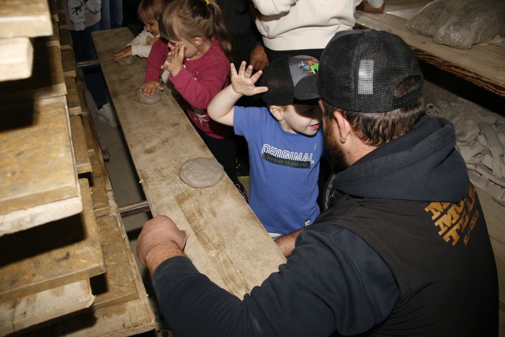 Otroci so odtisnili svoje dlani v glino in na zadnjo stran napisali svoje ime, najmlajšim so na pomoč priskočili starši, naredili še dve luknjici ter dali vse na police, da se posušijo. Ko se bo peč zakurila in se bodo pečnice in tlakovci žgali jim bodo tokrat delali družbo tudi odtisi dlani.