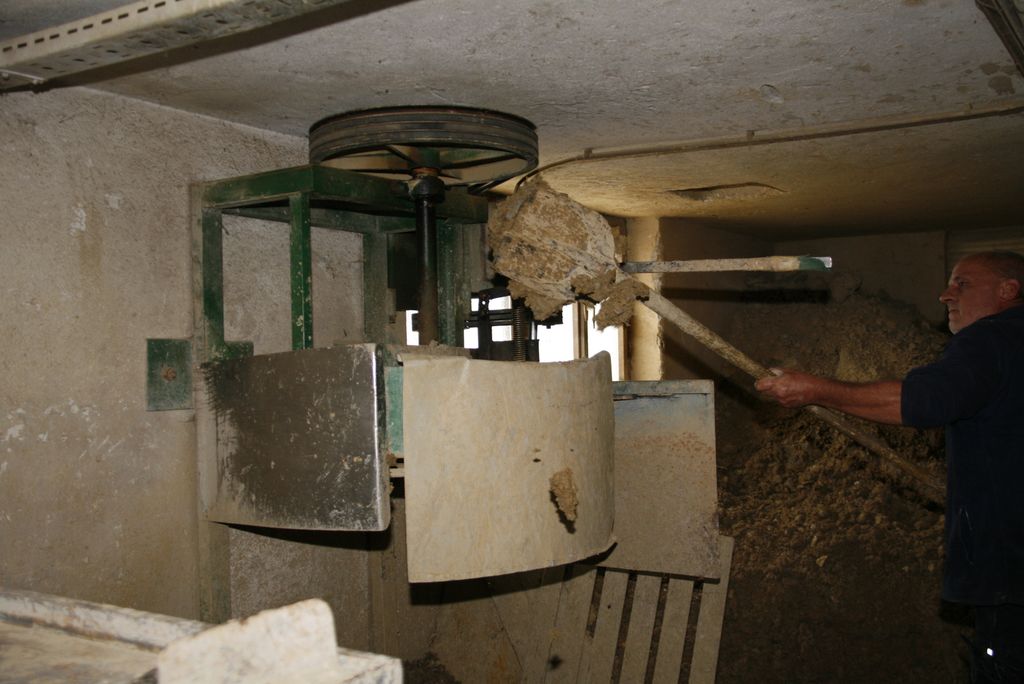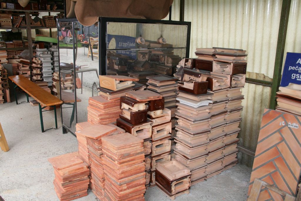Postopek so začeli z mletjem gline ga nato nadaljevali s stiskanjem v kalupe, ročno seveda, ter nadaljevali z manjšimi lepotnimi popravki in nato postavitvijo na pripravljeno desko za sušenje. Izvedeli smo, da se za izdelavo pečnic uporablja druga glina kot za izdelavo tlakovcev ter ugotovili, da delo le ni tako enostavno, ampak zahtevno, saj poleg moči potrebuje pečar tudi obilo znanja.