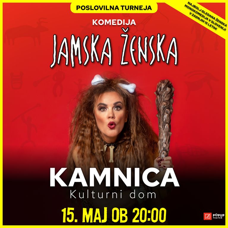Po izjemnem uspehu predstave Jamski človek zdaj na slovenskih odrih navdušuje še komedija Jamska ženska, avtorice Emme Peirson. V glavni vlogi blesti Rebeka Dremelj, ki s svojo predstavo osvaja občinstvo. Pod režijsko taktirko Ranka Babića, ki ga poznamo po hit komedijah Moška copata in Kriza srednjih let, predstava še naprej razveseljuje gledalce po vsej Sloveniji.