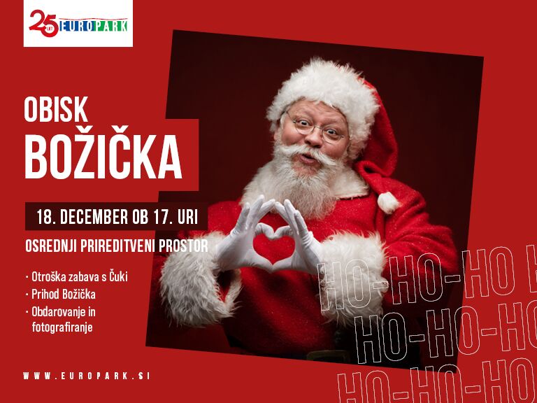 V četrtek, 18. 12. 2025, ob 17. uri ne zamudite obiska Božička na osrednjem prireditvenem prostoru.