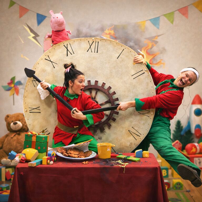 Ko odkrijeta posebno uro spominov, se dve nagajivi škratinji podata na igrivo potovanje skozi najbolj zabavne, zmedene in prisrčne trenutke preteklega decembra. Peka piškotov, priprava daril in hitenje tik pred prazniki oživijo v smešnih prizorih, polnih domišljije, gibanja in smeha.
