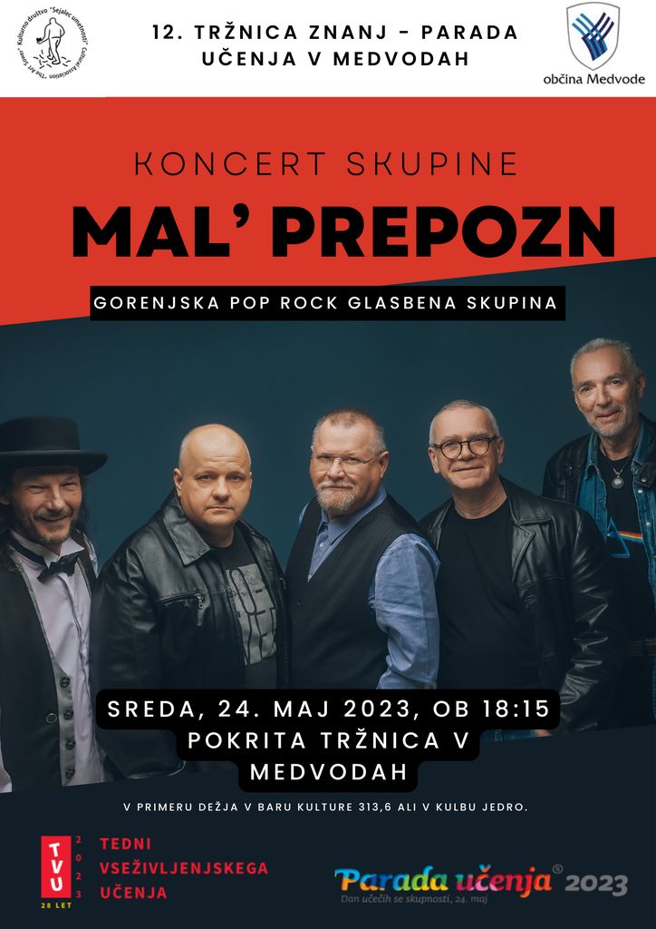 SPRETNOSTI TVU« Od 18:15 - 19:30 ure bo KONCERT glasbene skupine MAL PREPOZN !!! POZOR - V PRIMERU SLABEGA VREMENA BO KONCERT V BAR KULTURE 313,6, Cesta ob Sori 13, 1215 Medvode!!! Od 19:30 uri - domoznanski večer: Flancanje