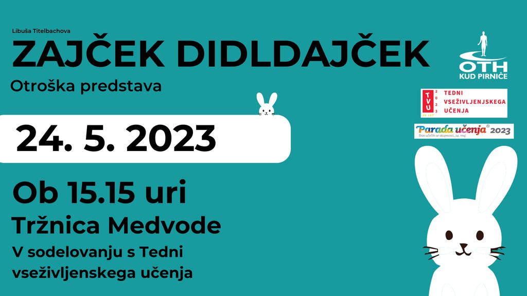 Ob 15:15 uri - PREDSTAVA ZA NAJMLAJŠE: ZAJČEK DIDLDAJČEK, KUD Pirniče 16:00 uri – OTVORITEV 12 Tržnice