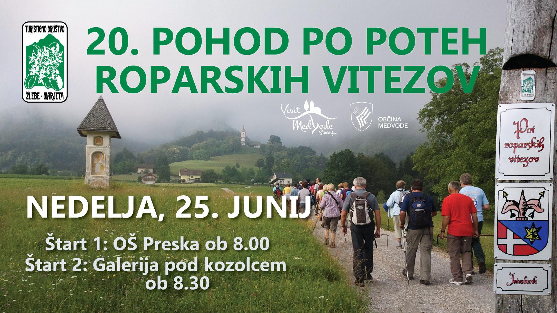 Pohod roparskih vitezov je športna, kulturna in turistična prireditev, za vse kategorije pohodnikov. Trasa pohoda ni zahtevna, nudi velik pregled skozi zgodovino vasi Žlebe in pokaže vse lepote krajinskega parka Polhograjskih dolomitov, na področje katerega vstopite ravno v vasi Žlebe. Nad vasjo so včasih prebivali vitezi Hertenbergi roparski vitezi, ki so prebivali v grajski utrdbi pod vznožjem hriba Jeterbenk ( 774) Pot je zanimiva skozi vse leto, poseben dogodek pa je ravno na dan 25. junija, ko poteka tradicionalni Pohod po poteh roparskih vitezov, v organizaciji Turističnega društva Žlebe – Marjeta, v počastitev občinskega praznika in ob dnevu državnosti.