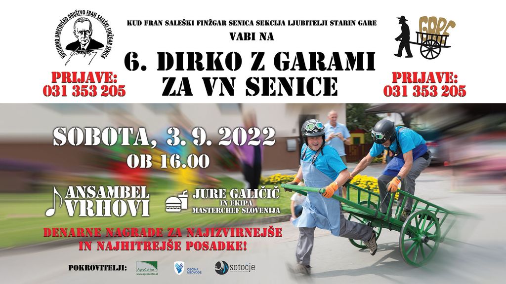 KUD Fran Saleški Finžgar Senica organizira že 6. dirko z garami za veliko nagrado Senice. Društvo je dirko obudilo skupaj s svojo sekcijo GARE, ki si je dolgo prizadevala, da bi se na Senici ponovno dirkalo z garami, kot se nekoč že je.