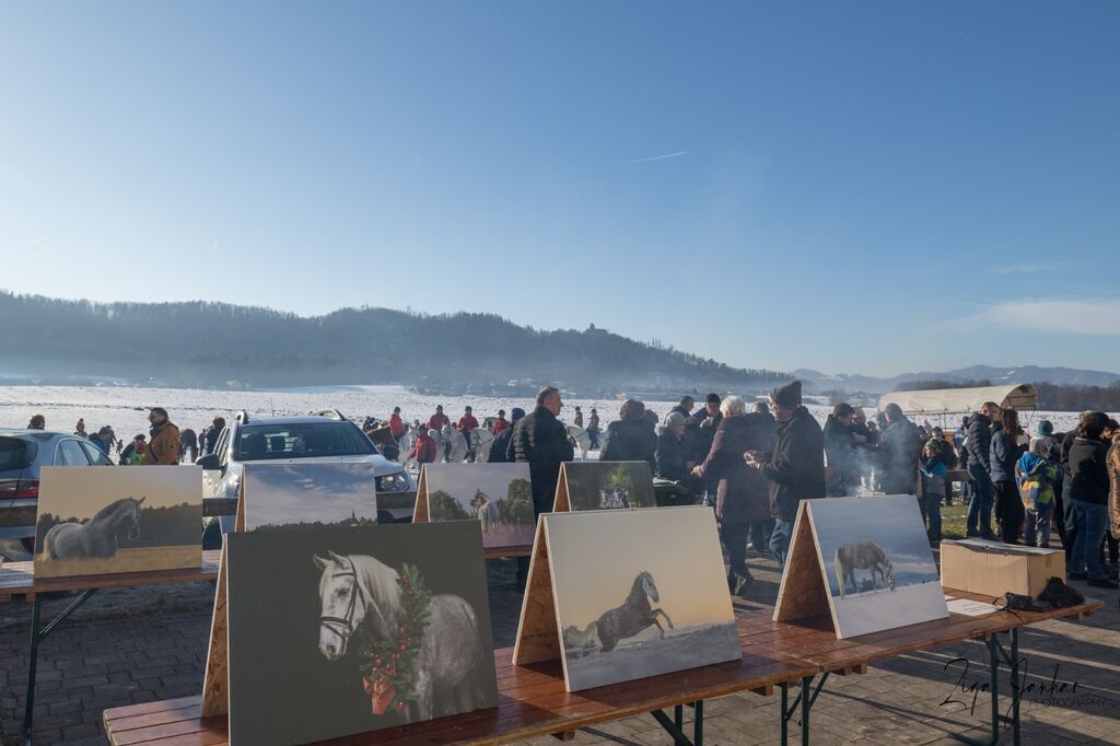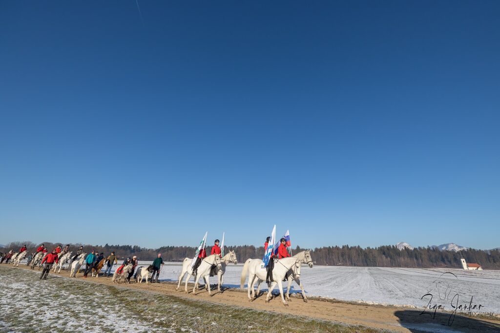 Konjeniki se bodo v sprevodu odpravili od kmetije Janhar proti cerkvi prav tako okoli 9. ure. Vsako leto si lastniki vzamejo čas, da svoje konje skrbno pripravijo – naj pridejo v sedlu, z vozom ali peš, prizor je vedno nekaj posebnega.