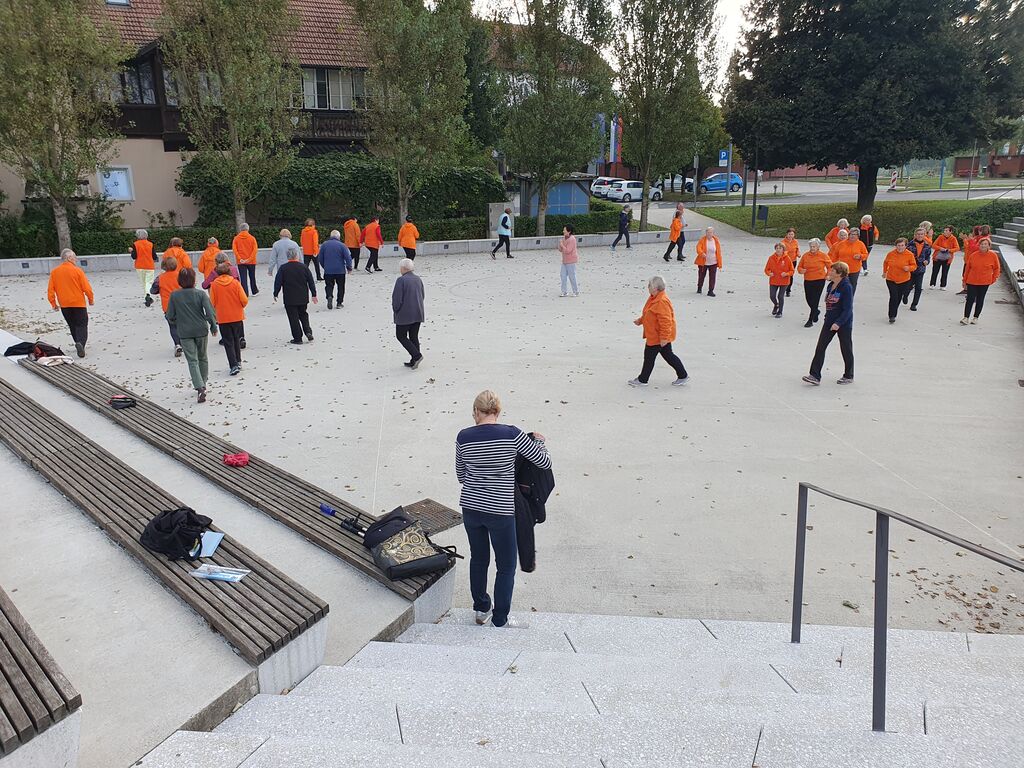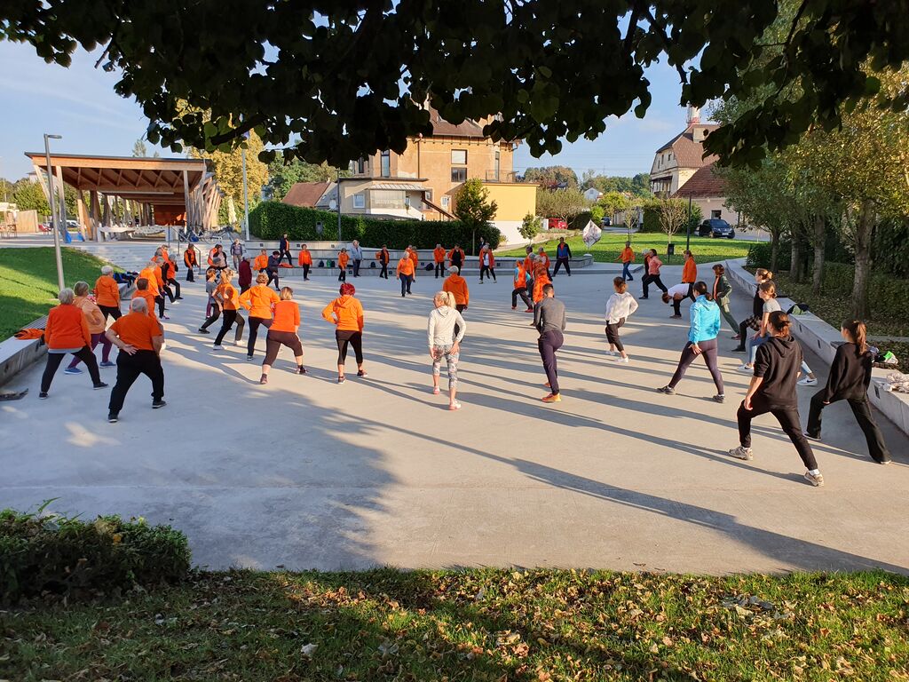 Lokalne telovadne skupine bodo združile vadbo ter ob osmi uri zjutraj vsak delovnik prikazale vaje in razgibavanje mimoidočim. Članice in člani skupin bodo prispeli k vadbi peš ali s kolesi. Občanke in občani iz vseh delov občine vabljeni na izgorevanje nakopičenih ogljikovih hidratov s tem, da pridete na razgibavanje pred začetkom svojega delovnika, pa čeprav še ne nosite oranžne majice teh zmagovalcev zdravega življenja.