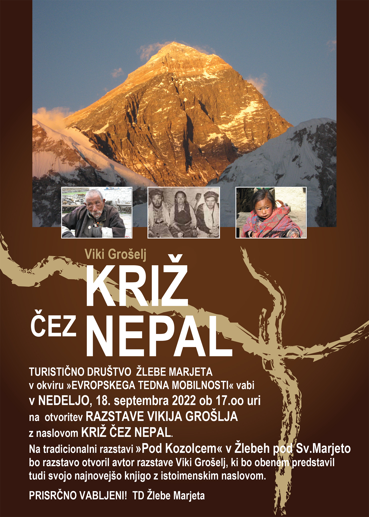 Prijazno povabljeni na otvoritev nove razstave, v Galeriji pod kozolcem, v Žlebeh. Pridite v nedeljo 18.9.2022 ob 17.00 uri. Razstavo bo otvoril avtor fotografij Viki Grošelj, ki je tudi avtor in pisec nove knjige Križ čez Nepal. Knjigo bo možno po otvoritvi tudi kupiti in se z avtorjem tudi pogovoriti.