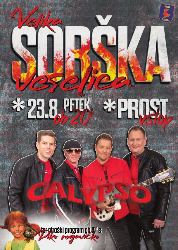 Od 20. ure naprej pa nas bo pozno v noč zabavala glasbena skupina za žur CALYPSO!