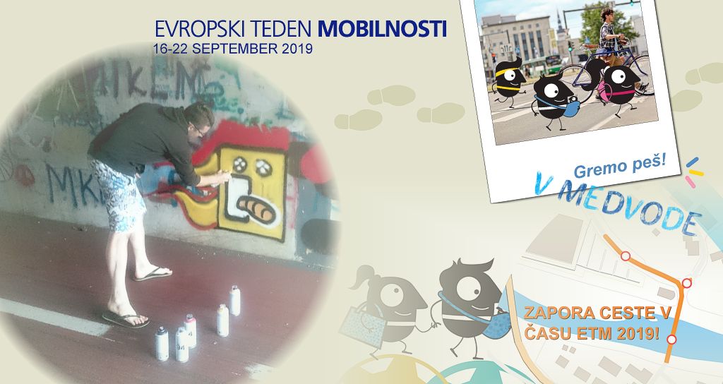 Občina bo letošnjemu sloganu Gremo peš! pomagala s posebnim projektom, in sicer delavnico, v kateri bodo lahko sodelovali vsi mladi pod vodstvom dveh mentorjev – poznavalcev in ustvarjalcev ulične umetnosti. Letos bosta vsak popoldan Evropskega tedna mobilnosti poslikavo vodila slikarja Matic Škulj in Peter Gaber. Pri ustvarjanju se jima lahko poleg mladih pridruži tudi kakšen mimoidoči, kdo ve, morda celo slikar, risar, grafitar, nikoli ne vemo, katerega pešca lahko ustvarjanje tako navduši, da se pridruži. Letos začenjamo s projektom poslikave podhoda pod krožiščem na Gorenjski cesti.