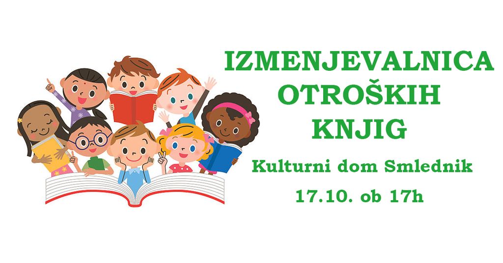 Vabimo vas na 1. izmenjevalnico otroških knjig v KD Smlednik v ponedeljek, 17. oktobra, med 17:00 in 19:00. Poleg izmenjevalnice bo na odru potekalo branje pravljic.
