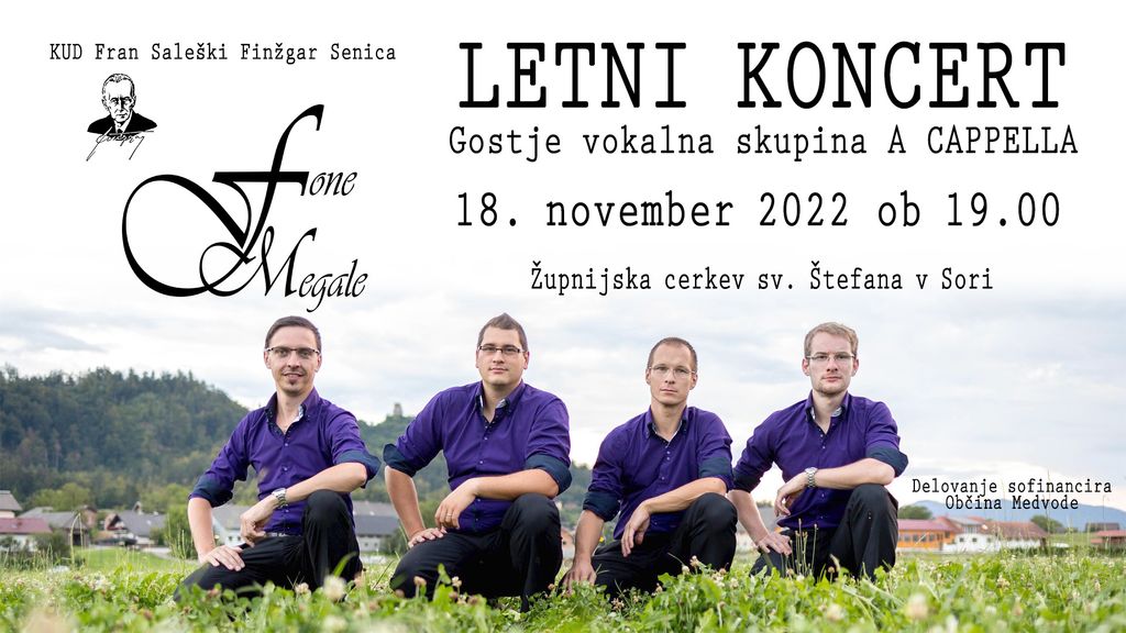Kot je že v navadi, bo tudi ta potekal v Župnijski cerkvi sv. Štefana v Sori pri Medvodah. Leto bodo gostje VS a cappella.