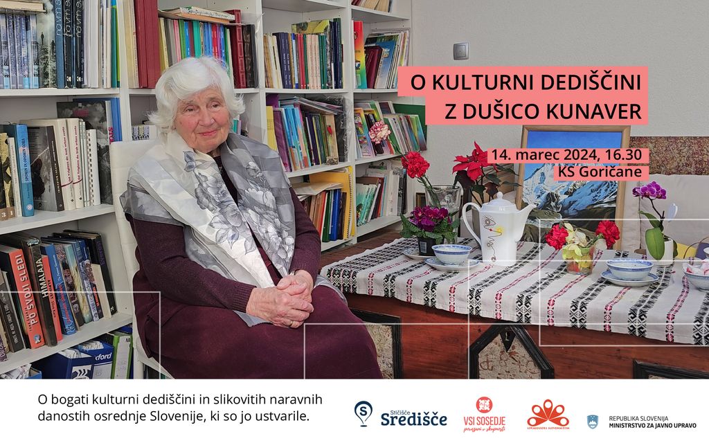 Društvo Naše gore list, ki ga vodi Dušica Kunaver, je zbralo zajetno zbirko gradiva o kulturni dediščini, ki ga bo zbirateljica Dušica Kunaver skozi moderacijo predstavnice Društva regionalnih turističnih vodnikov ARGOS tudi predstavila.