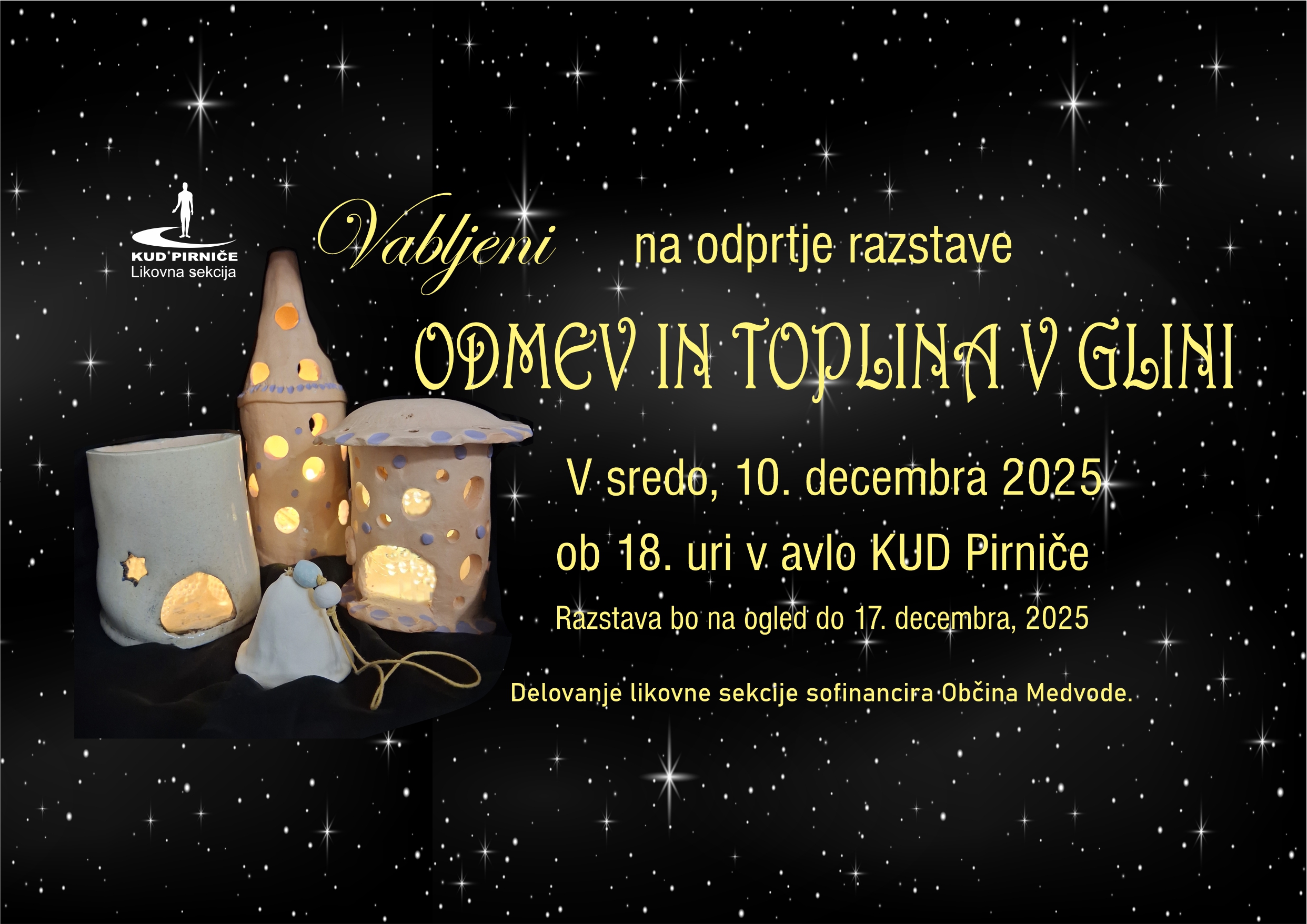 Vabljeni na odprtje razstave keramičnih izdelkov, ki so nastala izpod pridnih rok članic Likovne sekcije KUD Pirniče.
