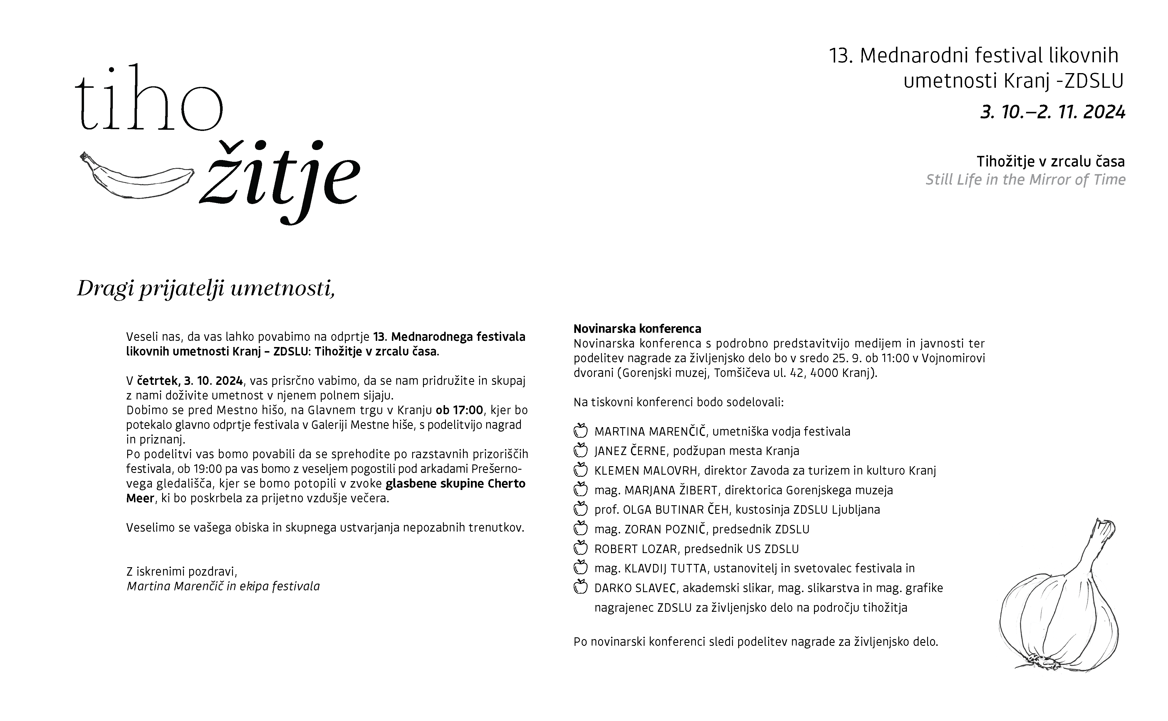Vljudno vabljeni na ogled 13. Mednarodnega festivala likovnih umetnosti Kranj - ZDSLU: Tihožitje v zrcalu časa!