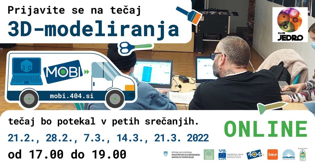 Projekt MOBI v sodelovanju s Klubom Jedro, Medvode, organizira tečaj 3D-modeliranja.
