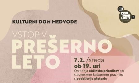 Na predvečer slovenskega kulturnega praznika bo v Kulturnem domu Medvode potekala osrednja občinska prireditev s podelitvijo priznanj na področju kulture - pletenic.
