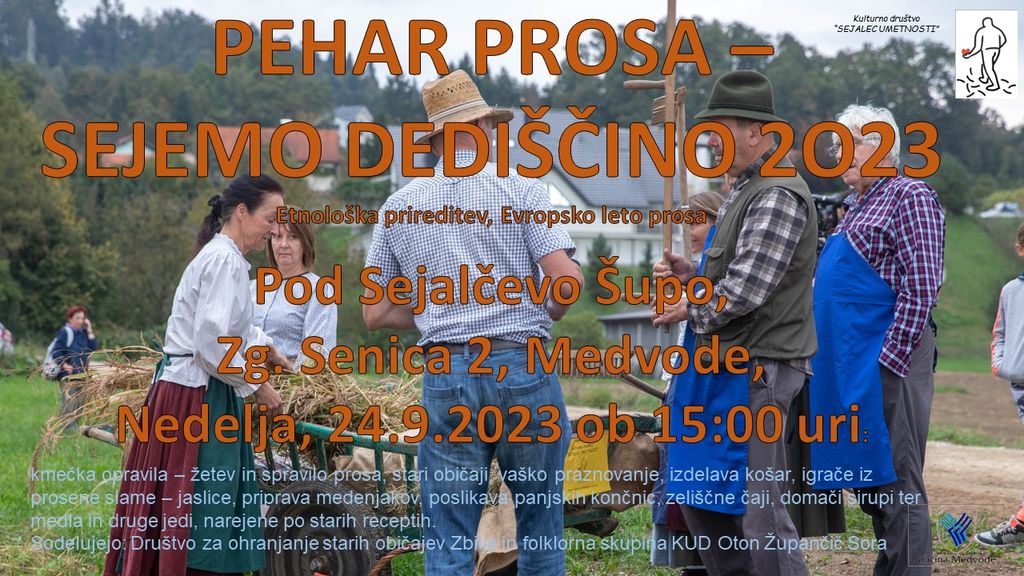 kmečka opravila – žetev in spravilo prosa, stari običaji, vaško praznovanje, izdelava košar, igrače iz prosene slame – jaslice, priprava medenjakov, poslikava panjskih končnic, zeliščne čaji, domači sirupi ter medla in druge jedi, narejene po starih receptih.