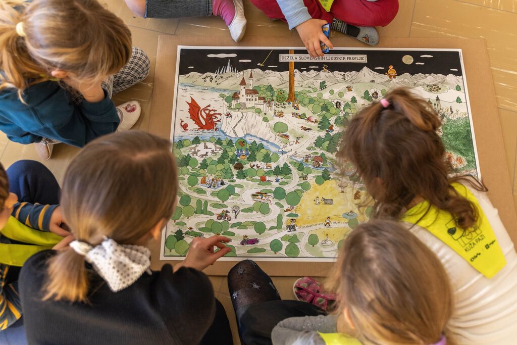V deželi slovenskih ljudskih pravljic živijo kralj Matjaž, hvaležni medved, ajd, vile in povodni mož. Po njej z avti divjajo tri botre lisičice, štirje godci pa jim dajejo takt. Ob pravljičnem zemljevidu, ki ga je narisal ilustrator Matija Medved, bomo raziskovali, katere pravljice že poznamo in odkrivali nove. S pomočjo pripovedovalskih kock in prosojnic pa si bomo mimogrede izmislili še kakšno svojo pravljico. Pridite, igrajmo se pripovedovanje! Delavnica je namenjena otrokom in njihovim staršem, vodi jo pripovedovalka Špela Frlic. Delavnica je za udeležence brezplačna, obvezna prijava na info@visitmedvode.si.
