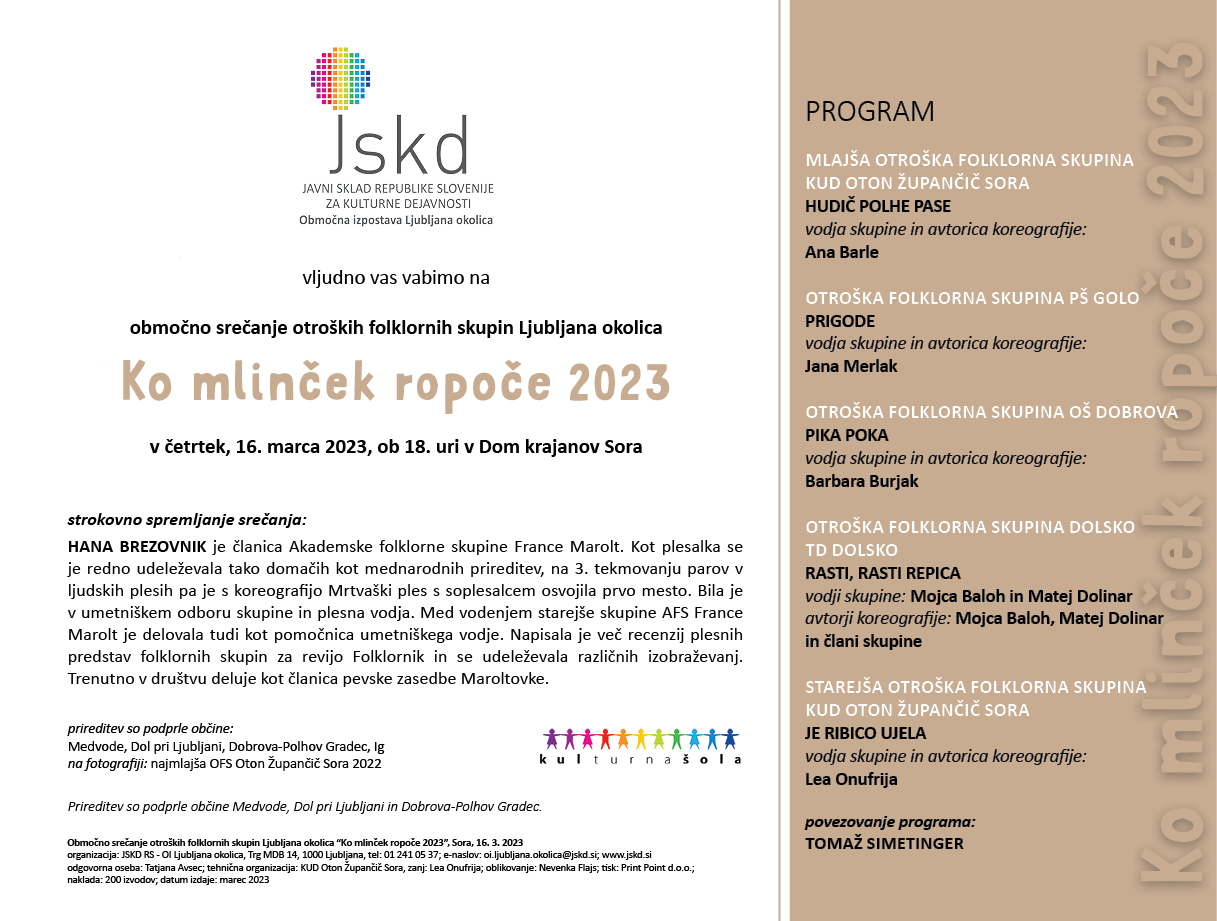 Organizator: JSKD RS ZA KULTURNE DEJAVNOSTI - Območna izpostava Ljubljana okolica
