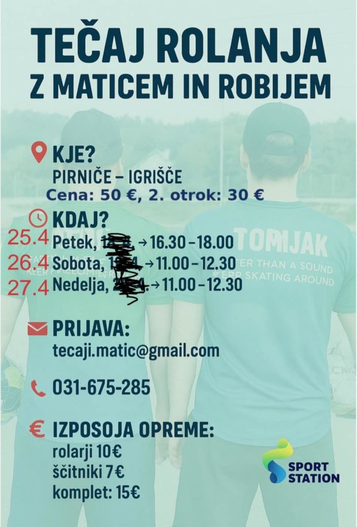 Kontaktni podatki organizatorja: 031 675 285 tecaji.matic@gmail.com.