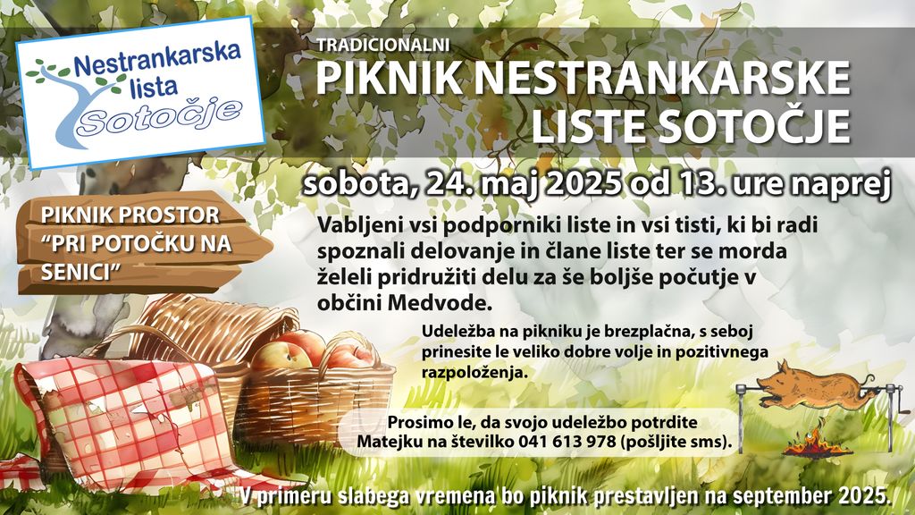 Piknik bo v soboto, 24. maja 2025 od 13. ure naprej na piknik prostoru "Pri potočku na Senici.