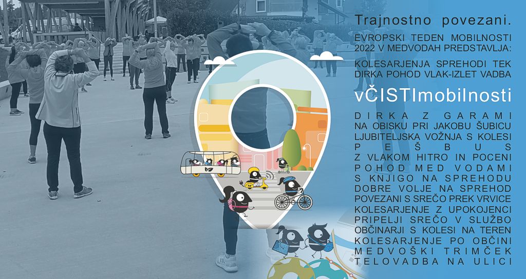 Občanke in občani v oranžnem ter drugi ljubitelji druženj so po končani epidemiji vendarle pričakali, da se v tednu mobilnosti lahko spet bolj povežejo. Lokalne telovadne skupine bodo združile vadbo ter ob osmi uri zjutraj vsak delovnik prikazale vaje in razgibavanje mimoidočim. Članice in člani skupin bodo prispeli k vadbi peš ali s kolesi. Občanke in občani iz vseh delov občine vabljeni na izgorevanje nakopičenih ogljikovih hidratov s tem, da pridete na razgibavanje pred začetkom svojega delovnika, pa čeprav še ne nosite oranžne majice teh zmagovalcev zdravega življenja.