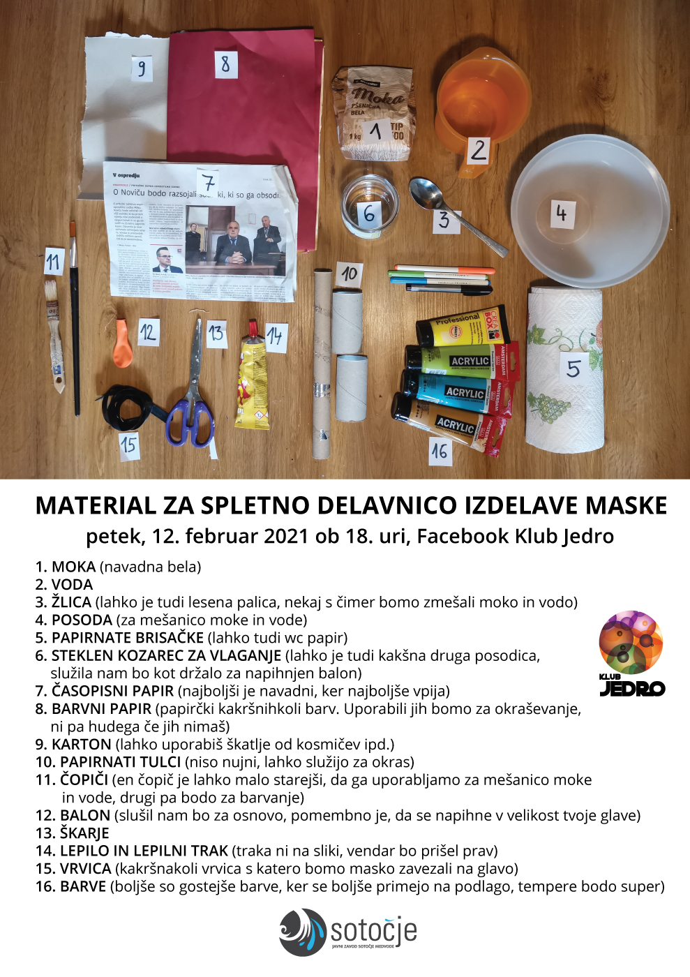 Po delavnici nam na mladina@zavodsotocje.si posredujte fotografijo svojega izdelka, najboljša maska bo nagrajena!